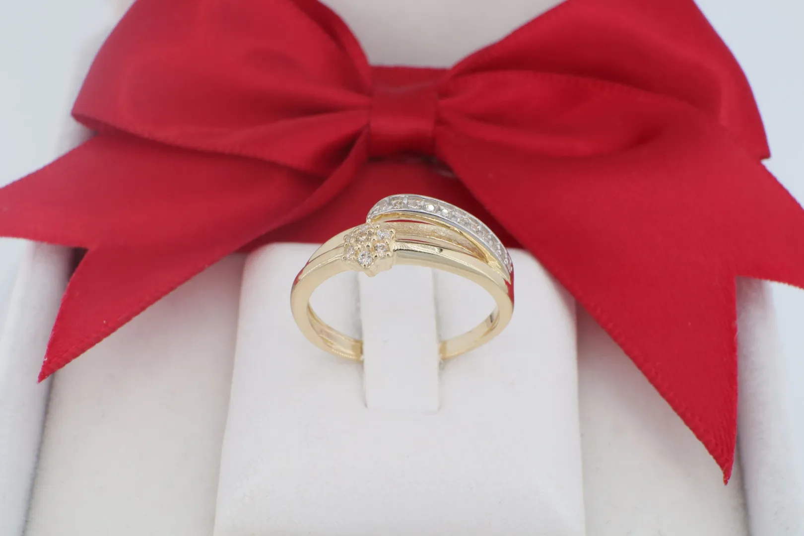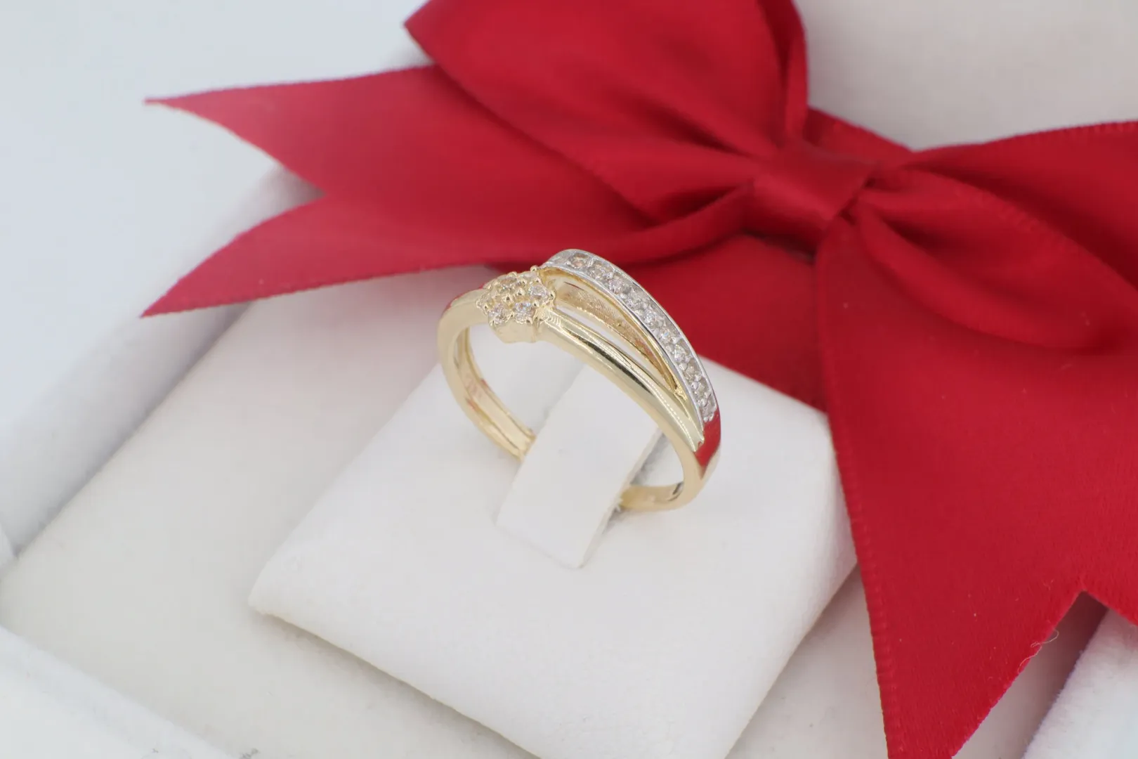 14 Karátos Arany Gyűrű Szikrázó Virág Motívummal és Ívelt Kövezéssel (gy1886)