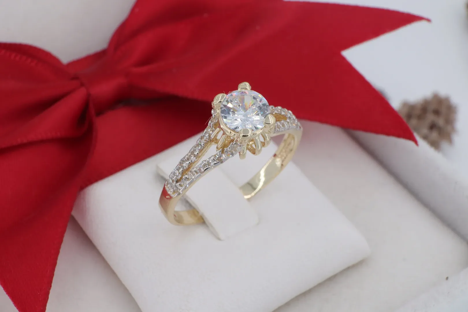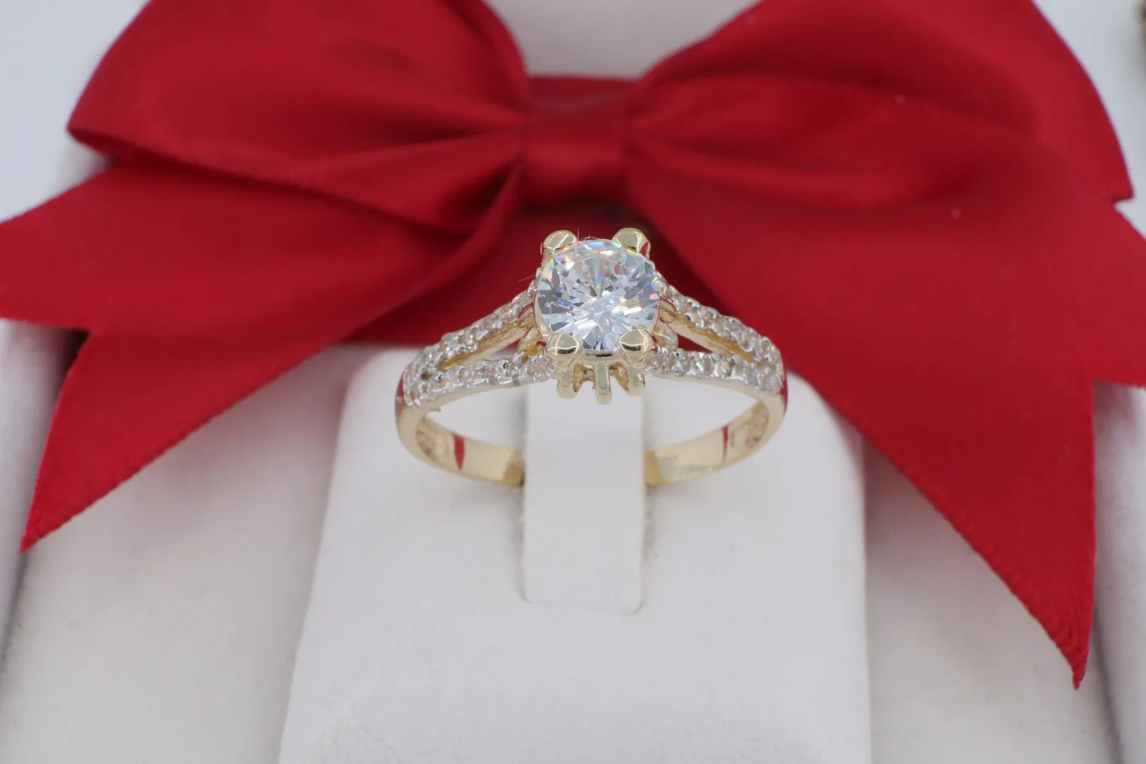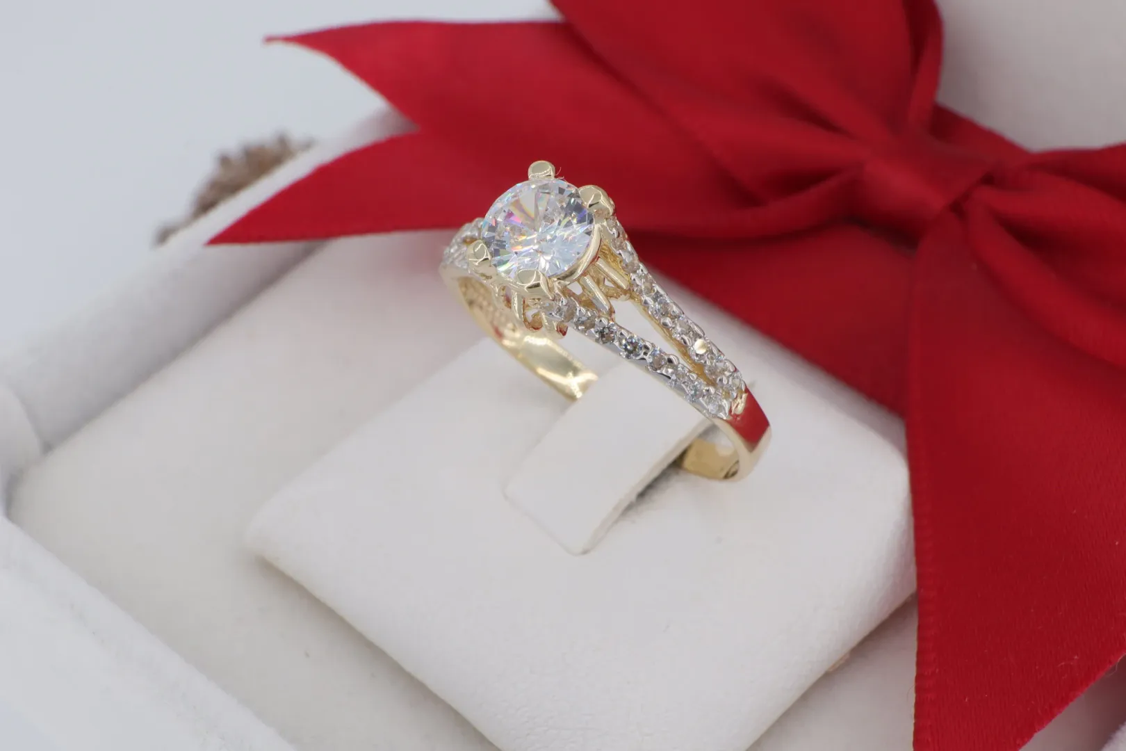 14 Karátos Arany Szoliter Gyűrű V-Alakú Kövezett Sínnel (gy1383)