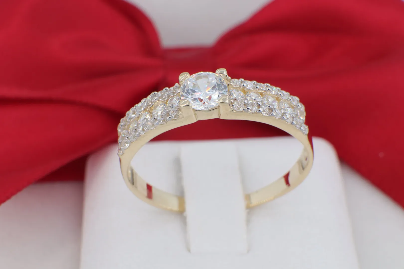 14 Karátos Sárga Arany Gyűrű Háromsoros Kövezéssel (gy2042)