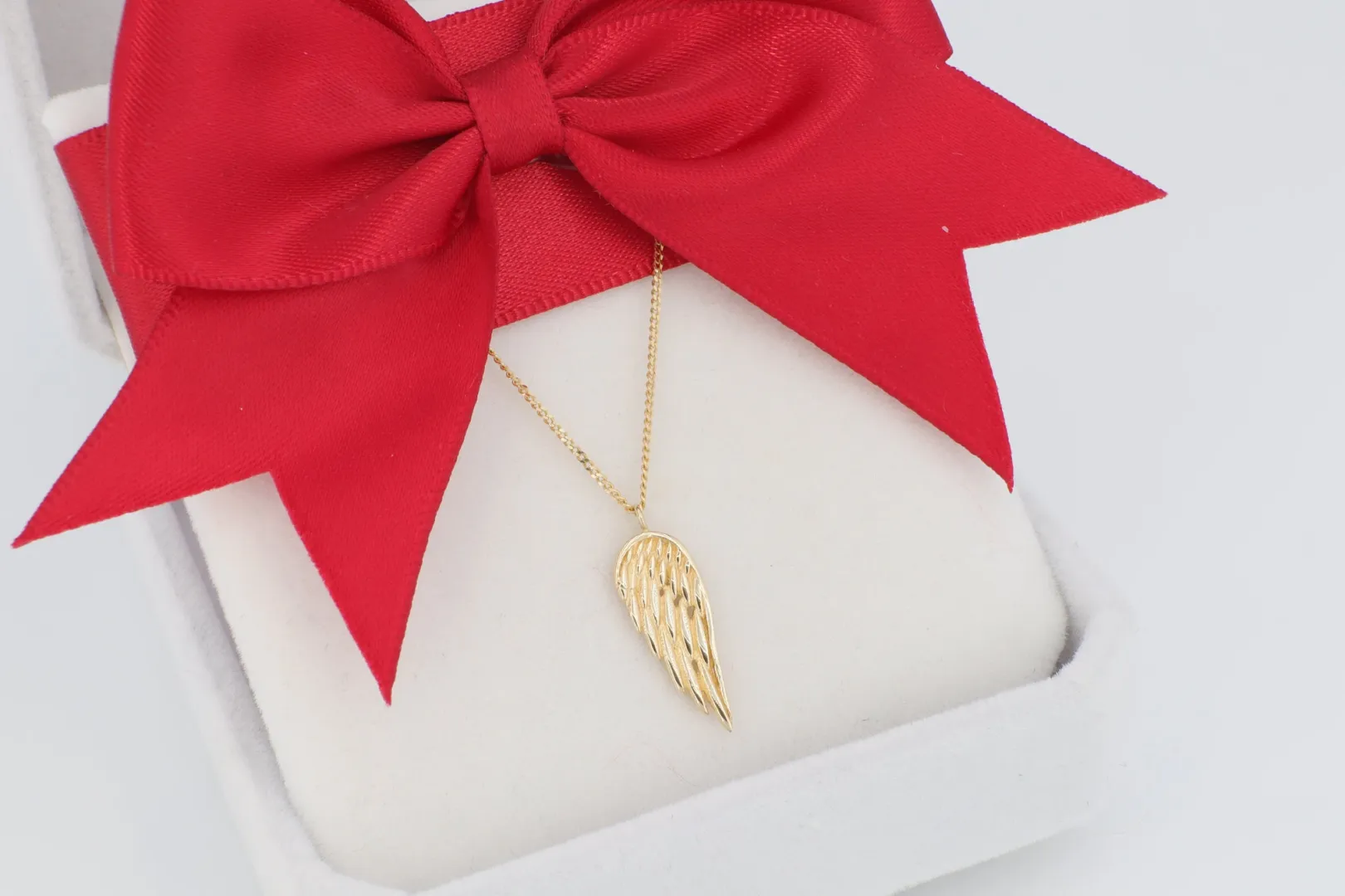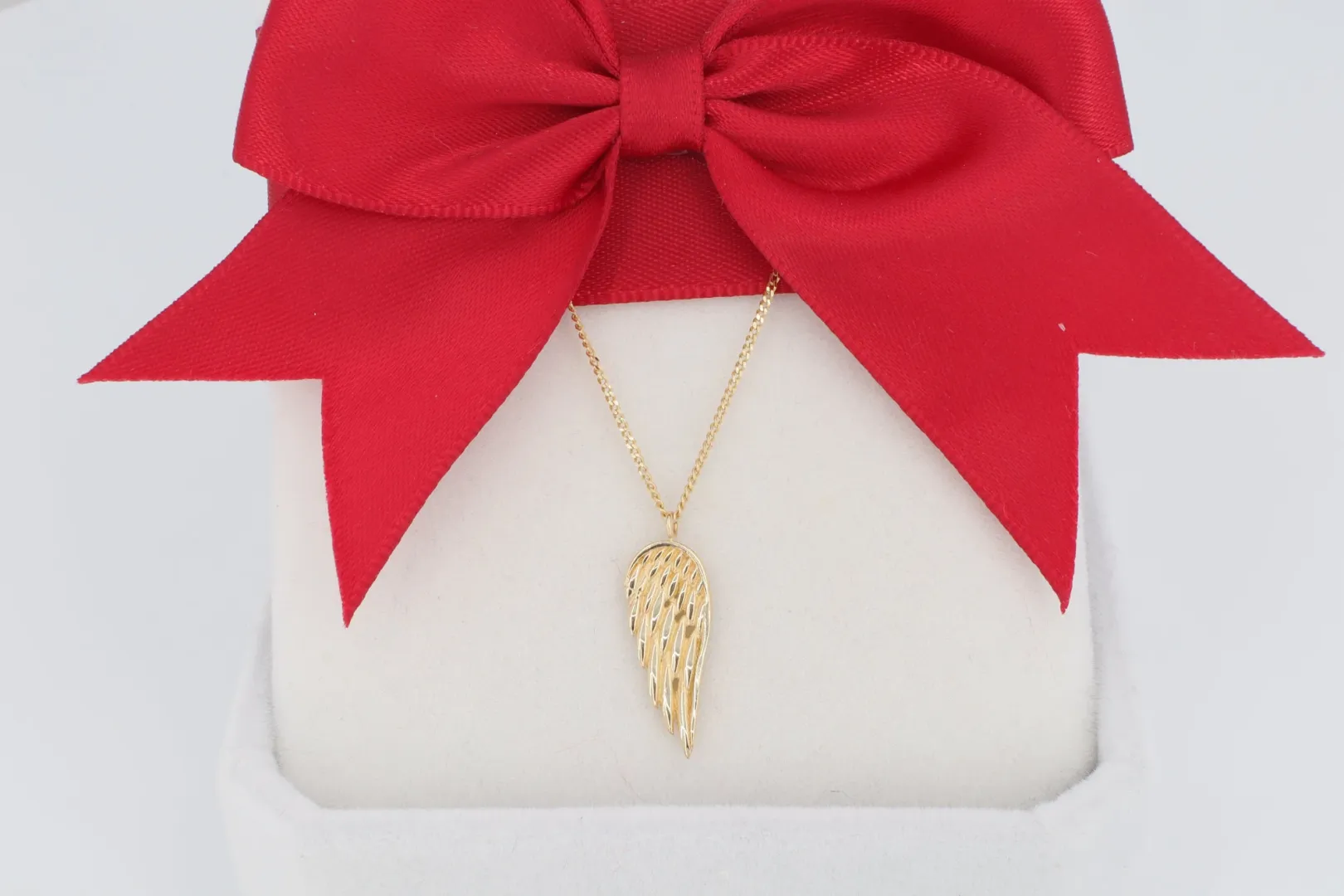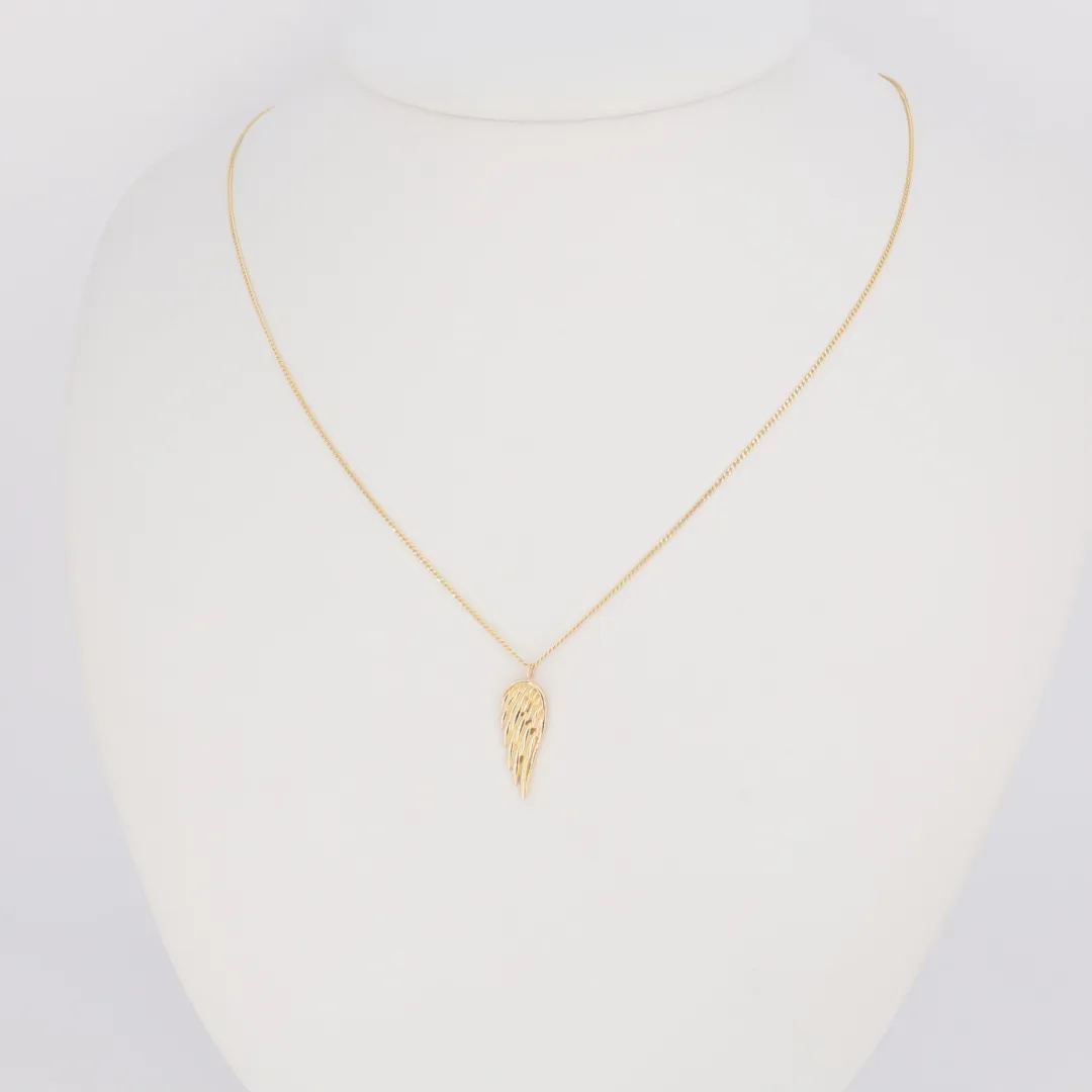 Az ékszer anyaga hitelesített 14 karátos sárga arany (585‰ finomságú), melynek vékony, polírozott lánca elegánsan tartja a szárny motívumot. A tollazatot finom, bekarcolt vonalak imitálják, ami strukturáltabb, művészi hatást kölcsönöz a darabnak.