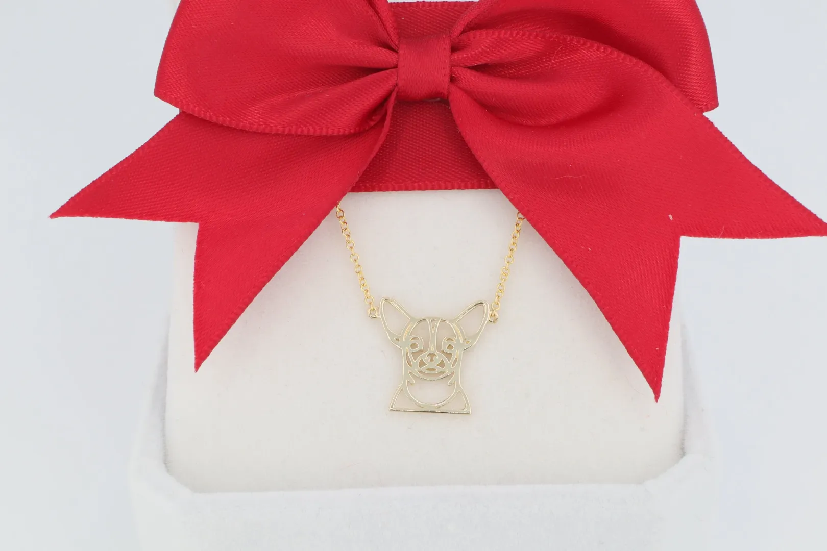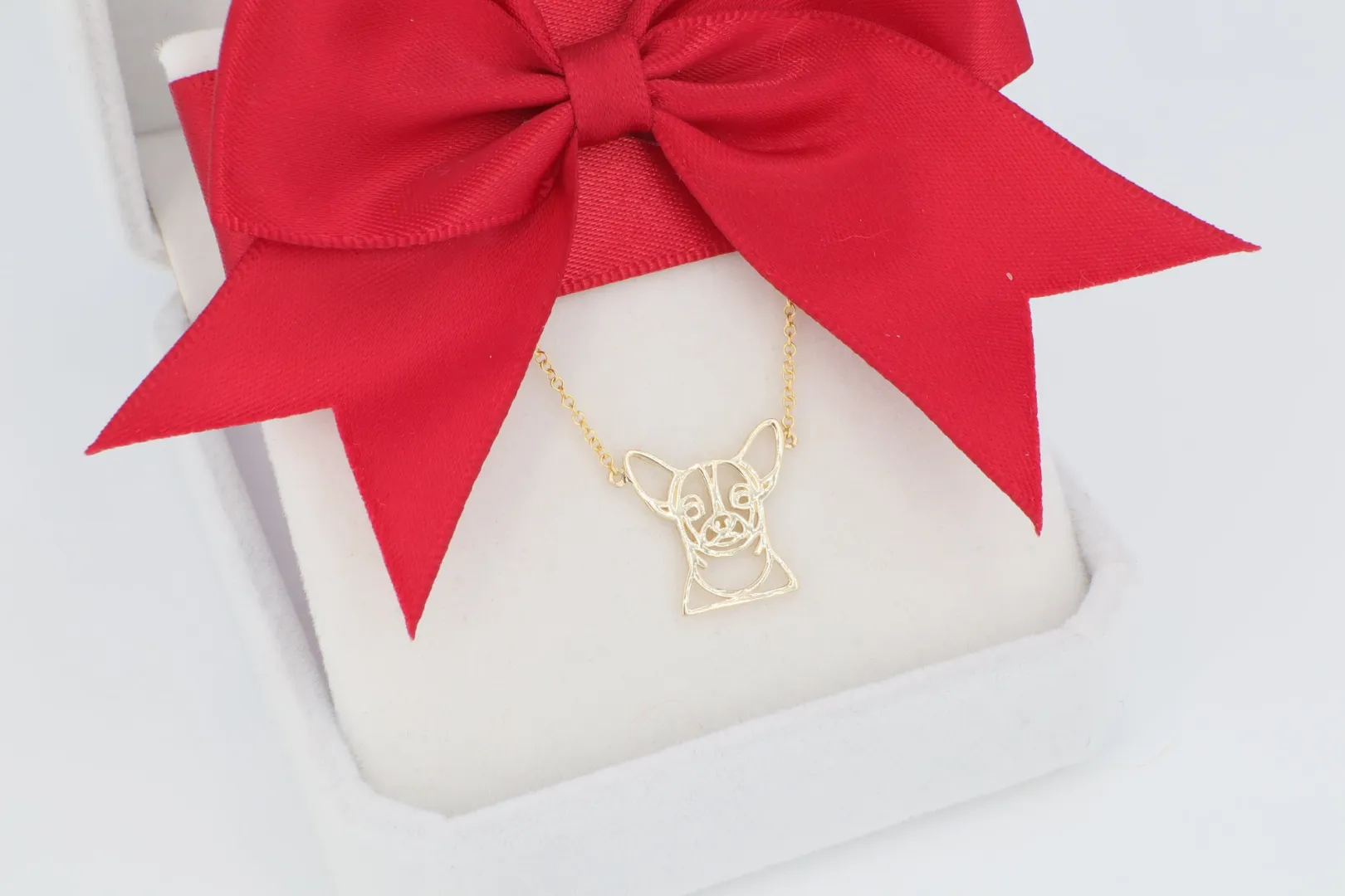 Ez a 14 karátos arany nyaklánc a csivava fajta vidám, de harcias szellemének stílusos tisztelgése. A medál a csivava (chihuahua) fejének és jellegzetes, nagy füleinek részletgazdag, körvonalas sziluettjét formázza. A medál letisztult, de pontos vonalvezetése tökéletesen megragadja a fajta báját és egyedi arckifejezését. Ez az ékszer ideális azok számára, akik büszkék apró termetű, de annál nagyobb személyiséggel rendelkező társukra, és szeretnék őt egy minőségi arany ékszerrel képviselni.