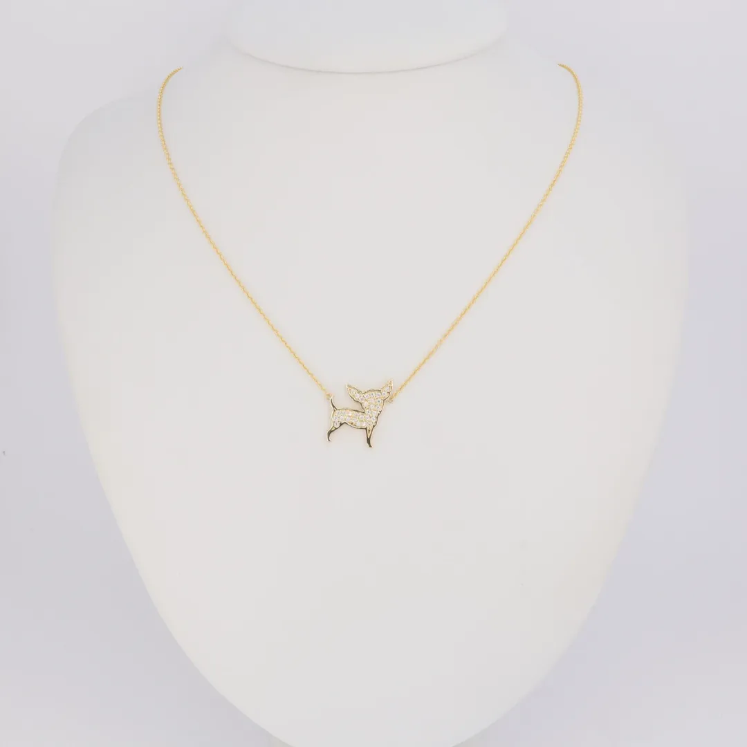 Az ány222-es nyaklánc a csivava bájának, a hűségnek és a ragyogó luxusnak a stílusos kombinációja.