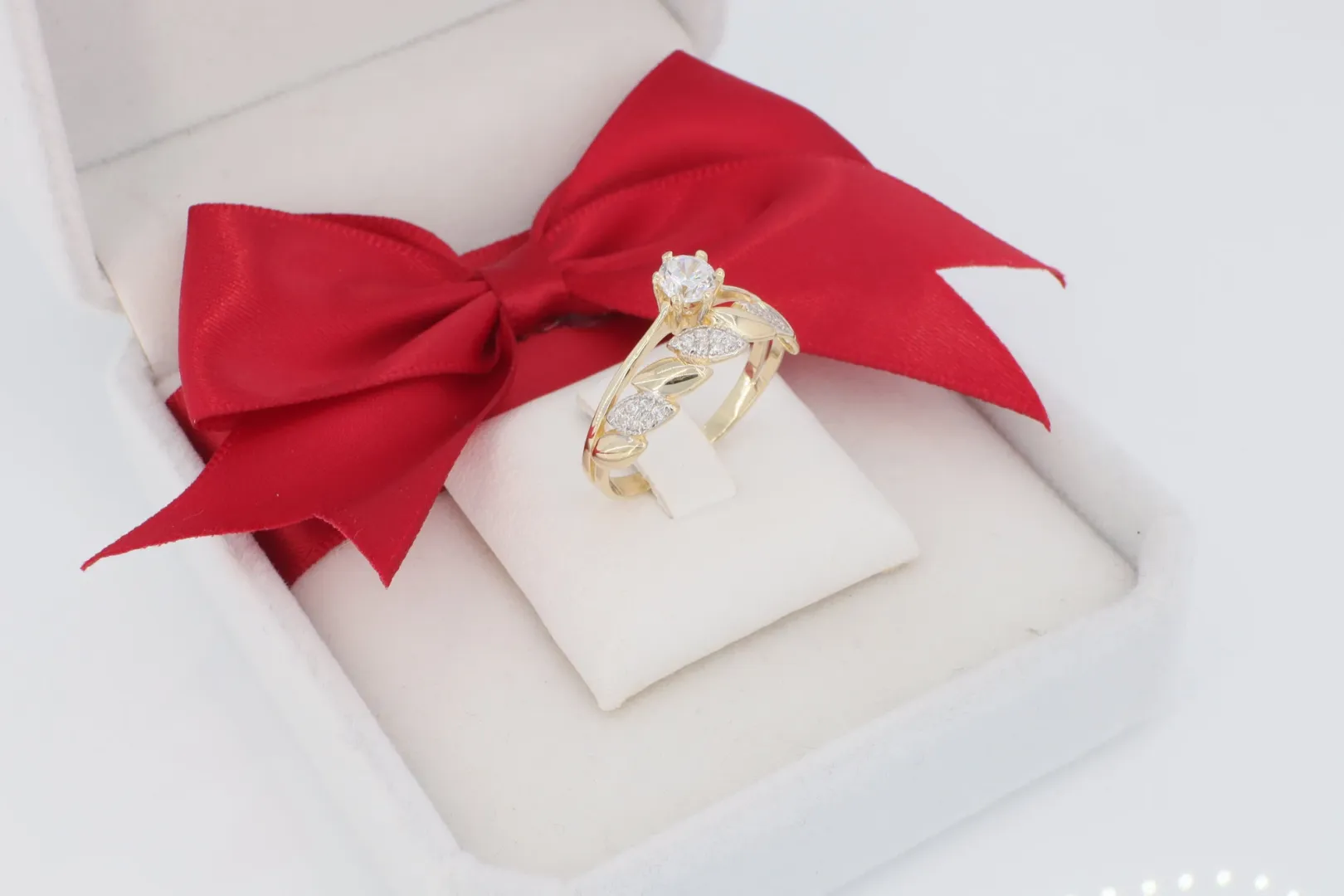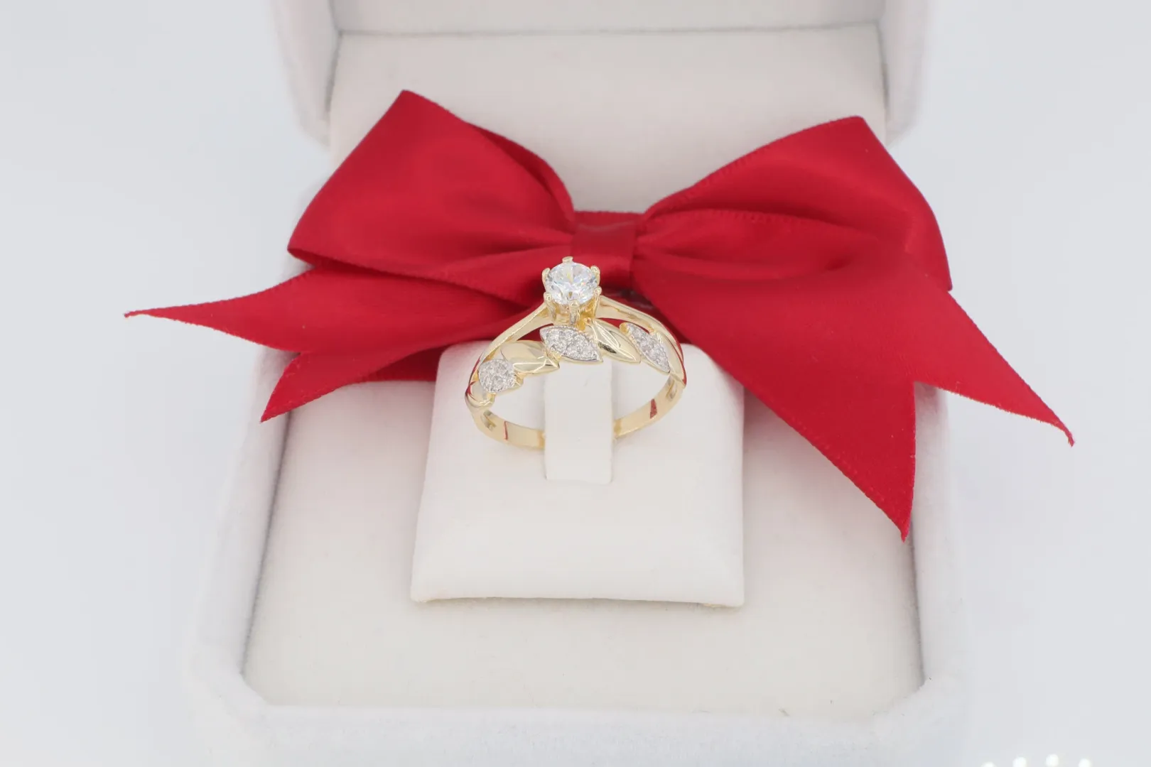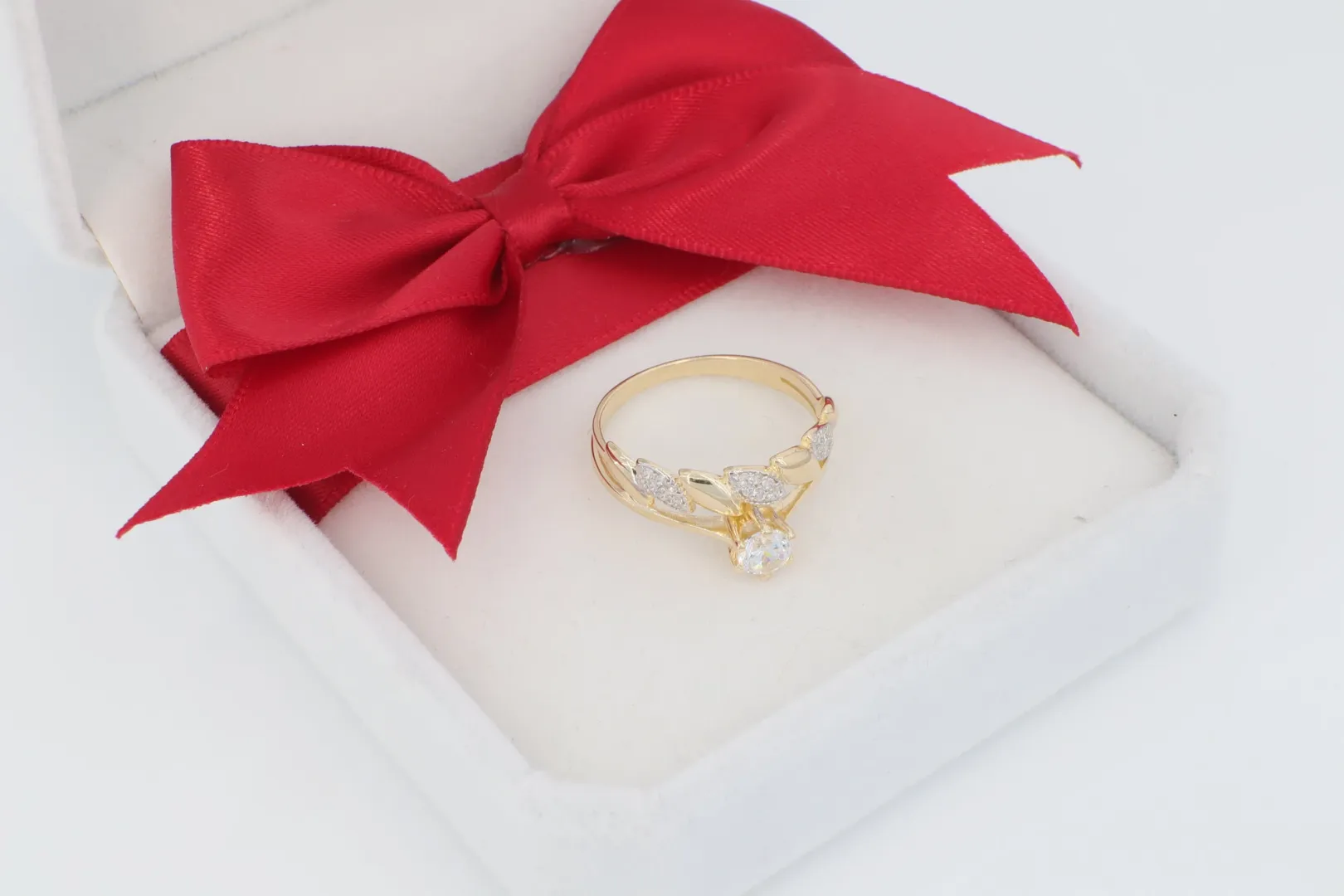 Központi Díszítés: A fókuszban lévő, kiemelkedő cirkónia kő (szoliter) maximális ragyogást biztosít.