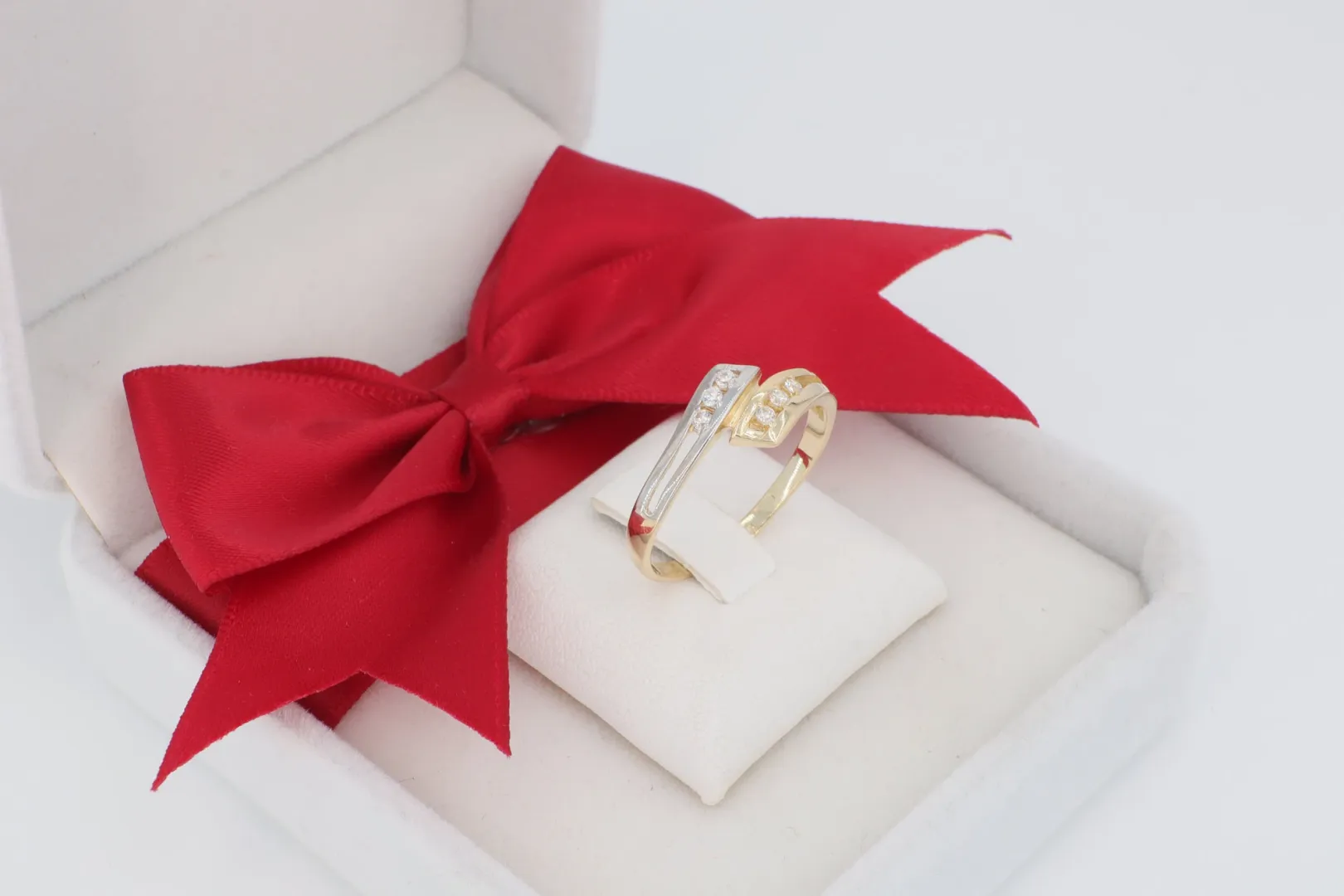 Fokozza a fehér arany sáv és a cirkónia kövek hideg, briliáns csillogását.