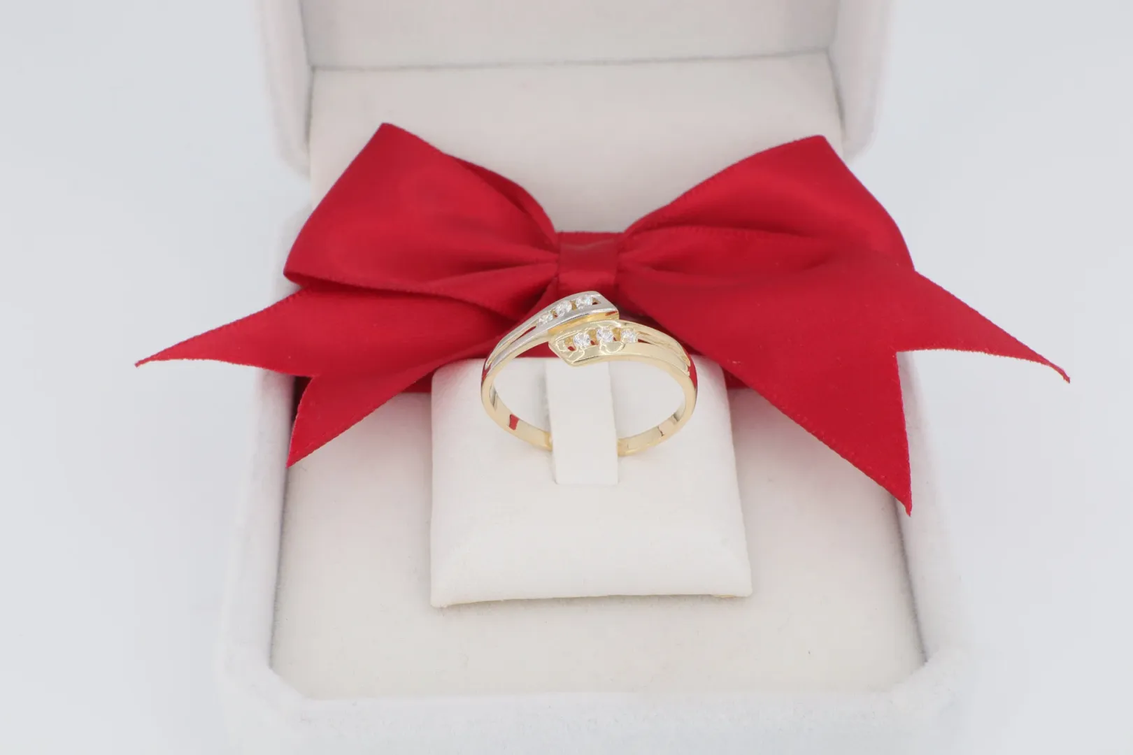 Kövek: Ragyogó, apró cirkónia kövek (a fehér arany sávban).