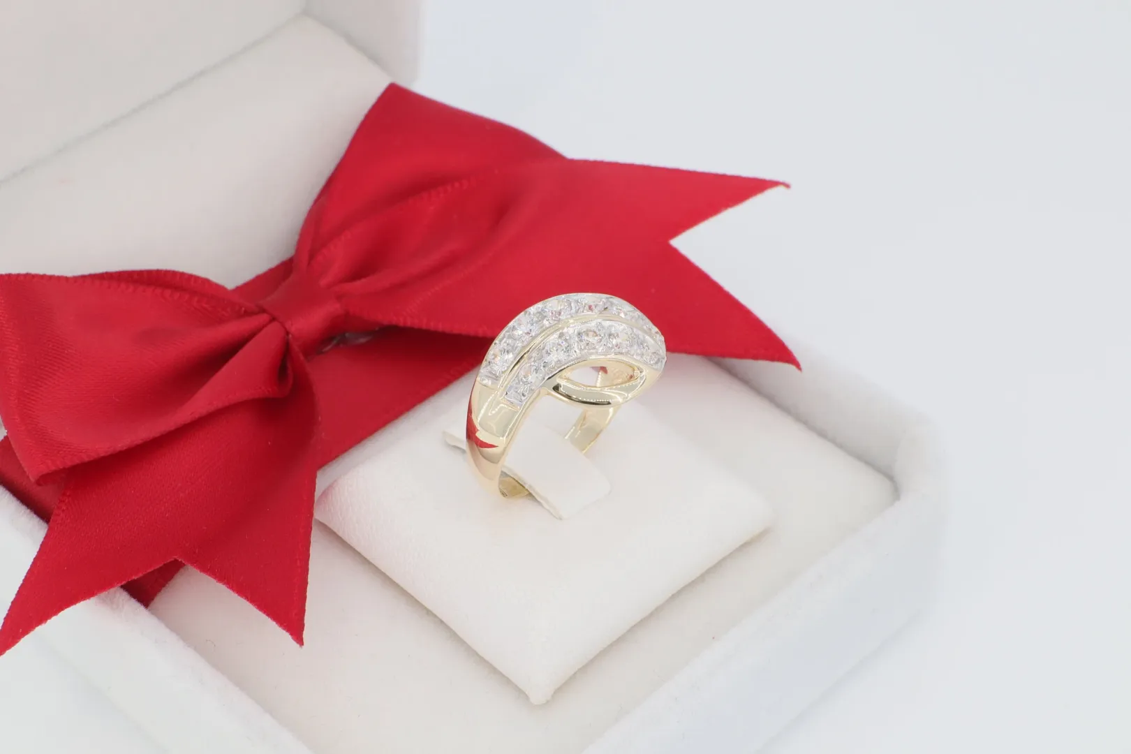 Luxus Ékszer: A gazdag berakás és a széles forma miatt tökéletes statement gyűrű hivatalos eseményekre.