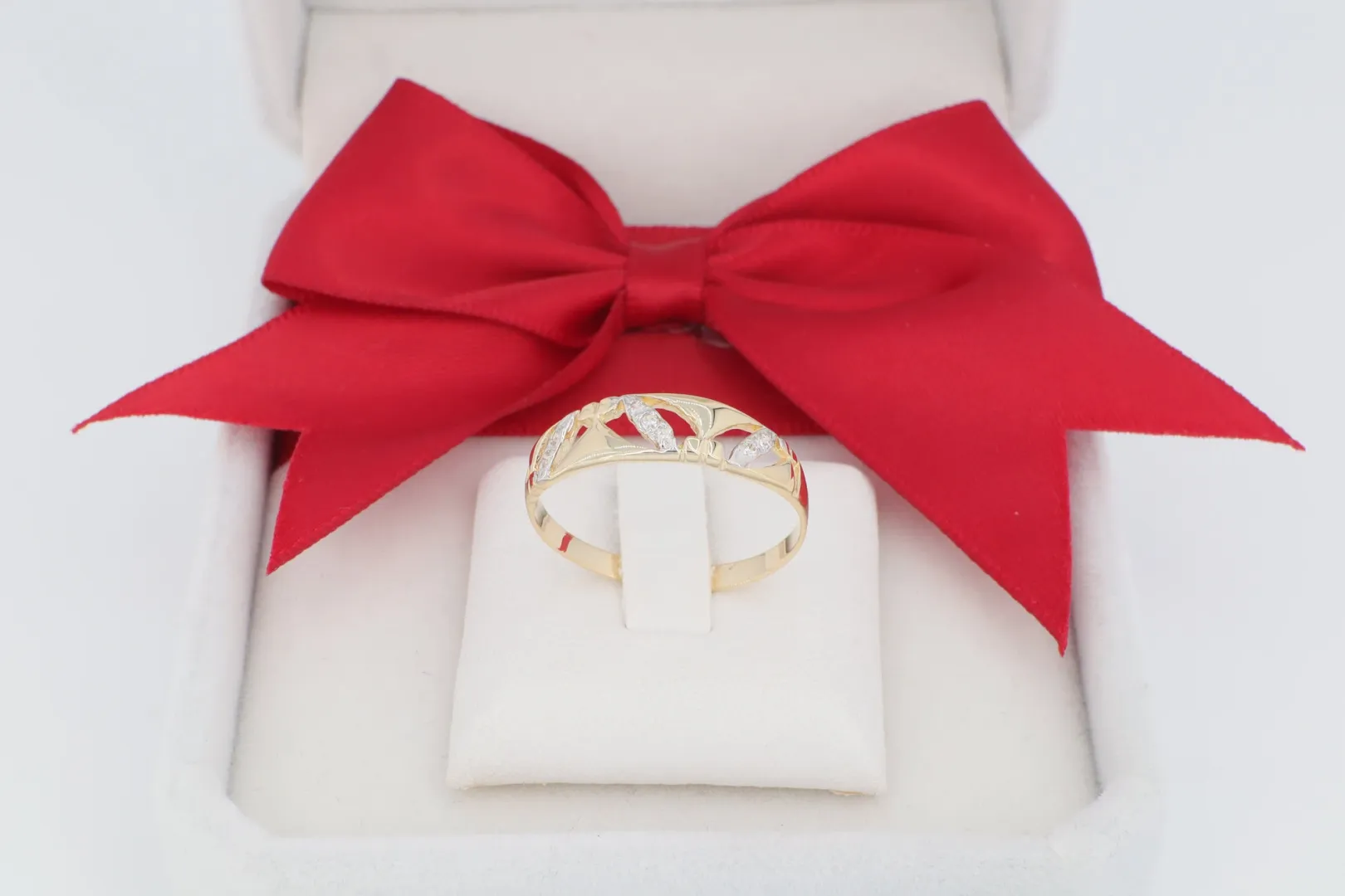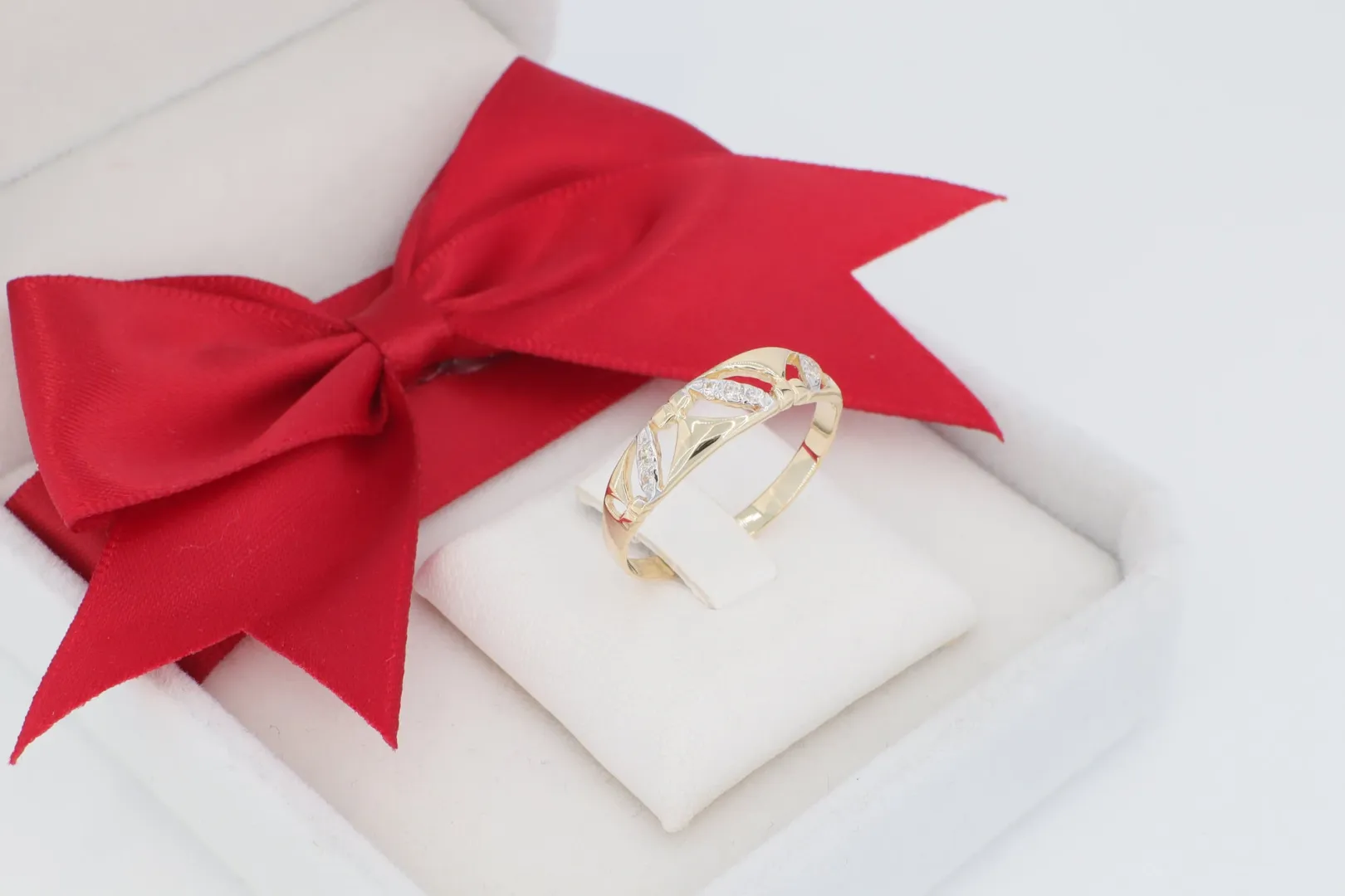 A GY0550 női arany gyűrű egy diszkrét, de elegáns ékszer, amely a természet finom, levélszerű vagy sziromszerű motívumait ünnepli. A gyűrű feje három, levél/virágszirom alakú elemből áll, amelyek finoman ívelve ülnek a polírozott sín tetején. A design a klasszikus sárga arany vázat ötvözi a modern kétszínű hatással: a szirom/levél motívumok egyes részei fehérarany hatású (ródiumozott) felülettel vannak ellátva, és apró, szikrázó cirkónia kövek díszítik. Ez a finom arany gyűrű ideális a mindennapi elegancia megteremtéséhez, amely könnyed, de értékes kiegészítő.