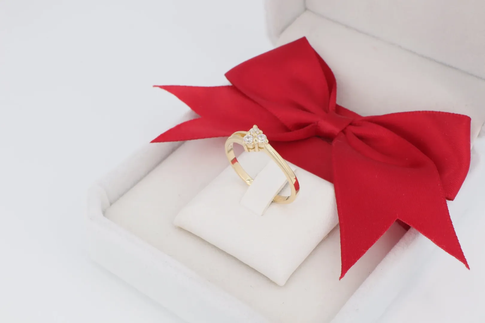 Virág/Cluster Motívum: A gyűrű feje egy apró, de intenzíven csillogó kőcsoportot (cluster) alkot, amely egy virágot vagy háromszöget idéz, három vagy több apró cirkónia kő felhasználásával. A kövek szorosan egymás mellett ülnek, optikailag egy nagyobb drágakő benyomását keltve.