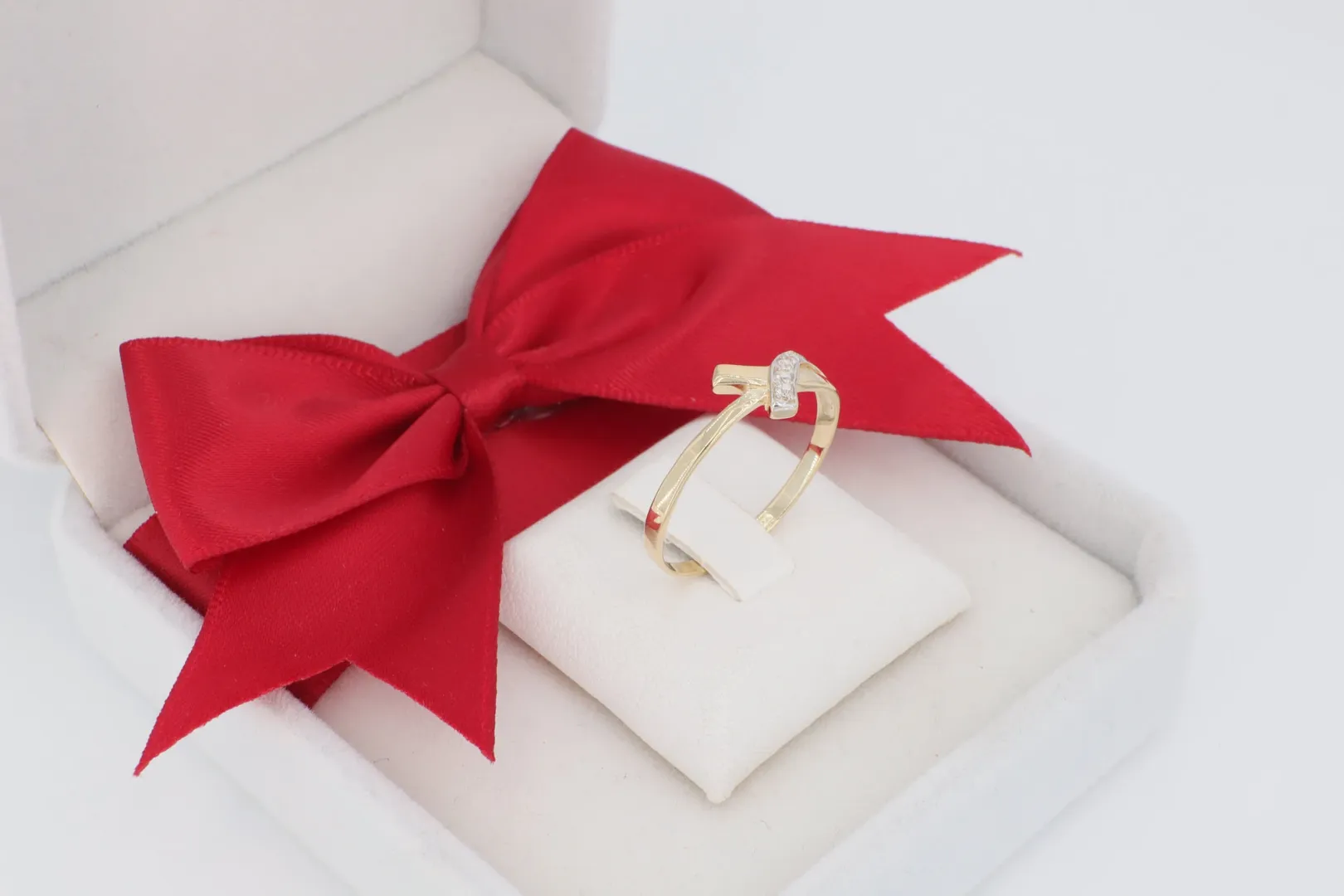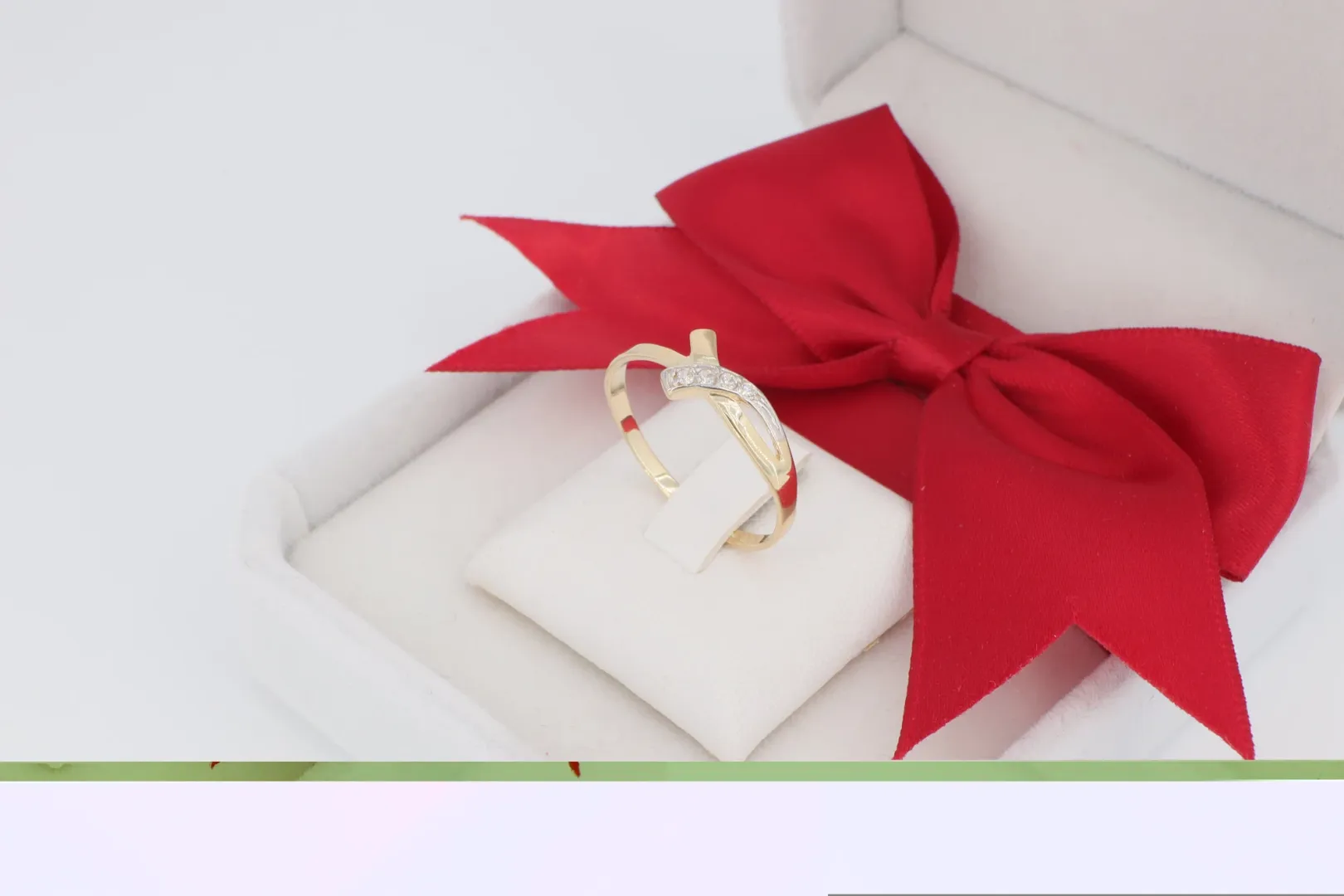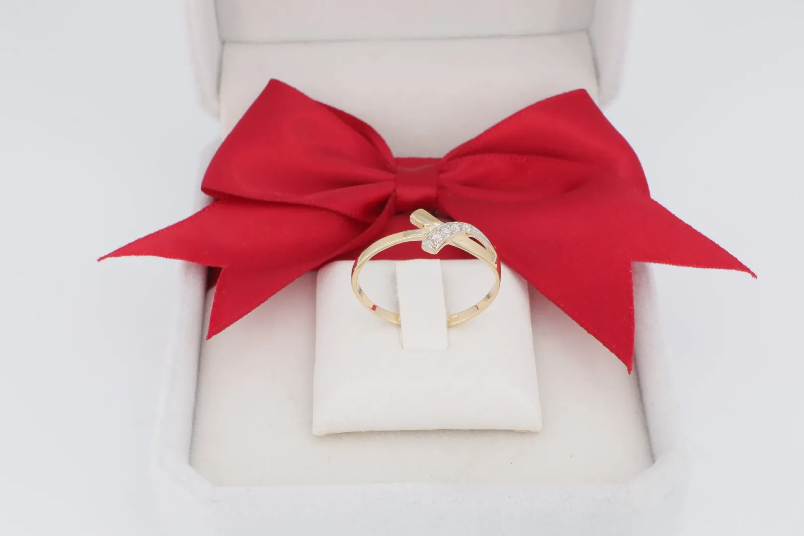 Az ékszer anyaga hitelesített 14 karátos sárga arany (585‰ finomságú), mely stabil, vékony gyűrűsínnel rendelkezik. A gyűrű feje egy apró, átlósan ívelt sáv, melyet precízen beültetett cirkónia kövek borítanak, így egy apró, de annál intenzívebb fénypontot képez.