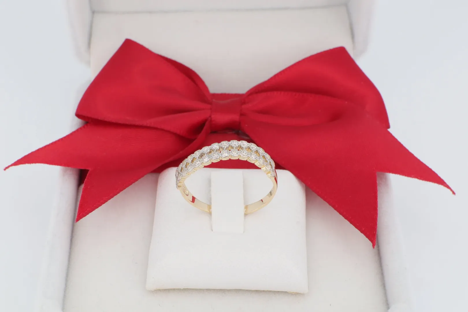 Kifinomult Elegancia: Ez a köves arany gyűrű a klasszikus sávos ékszerek kedvelőinek készült, akik értékelik a finom vonalvezetést és a ragyogást.