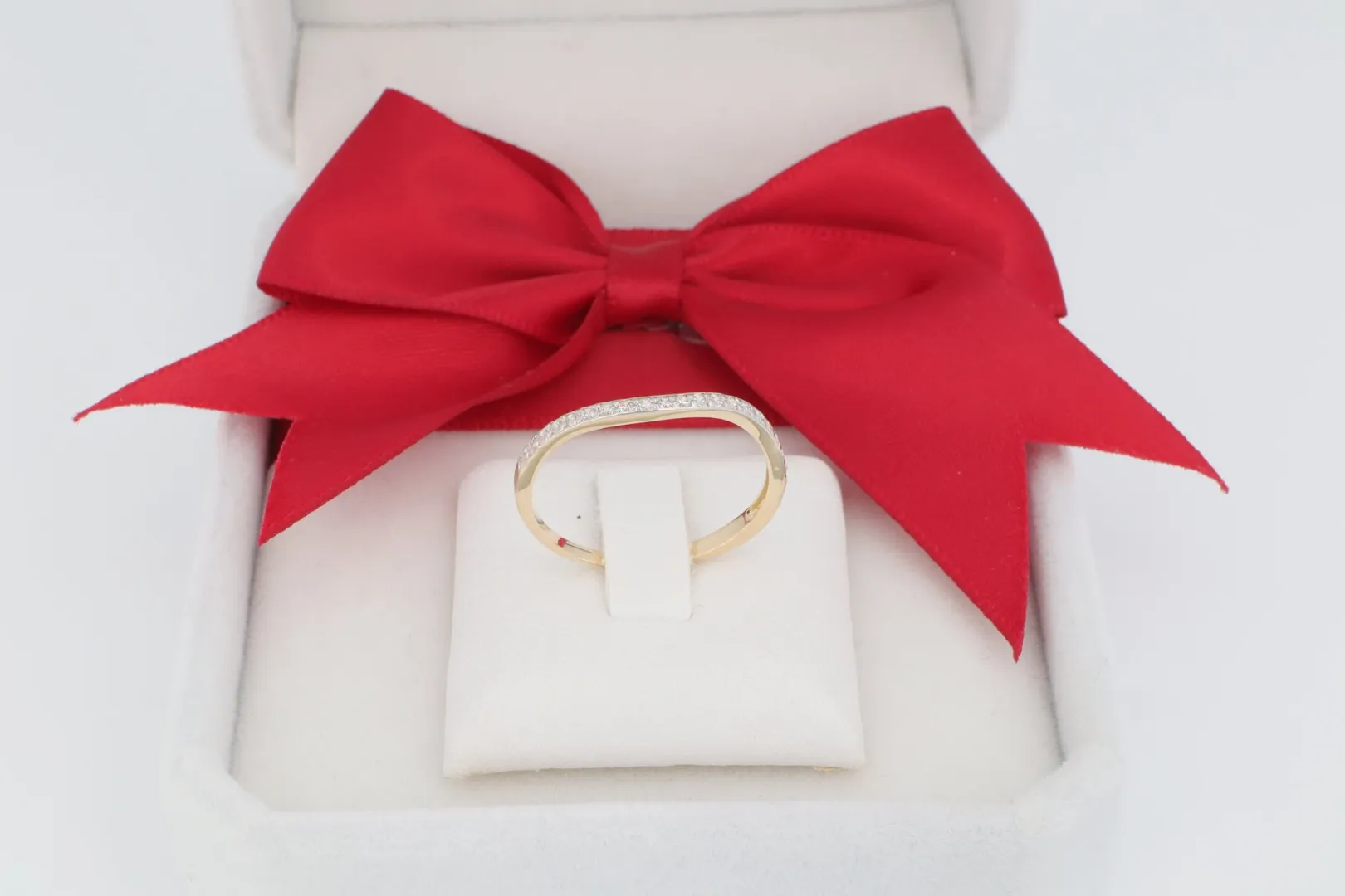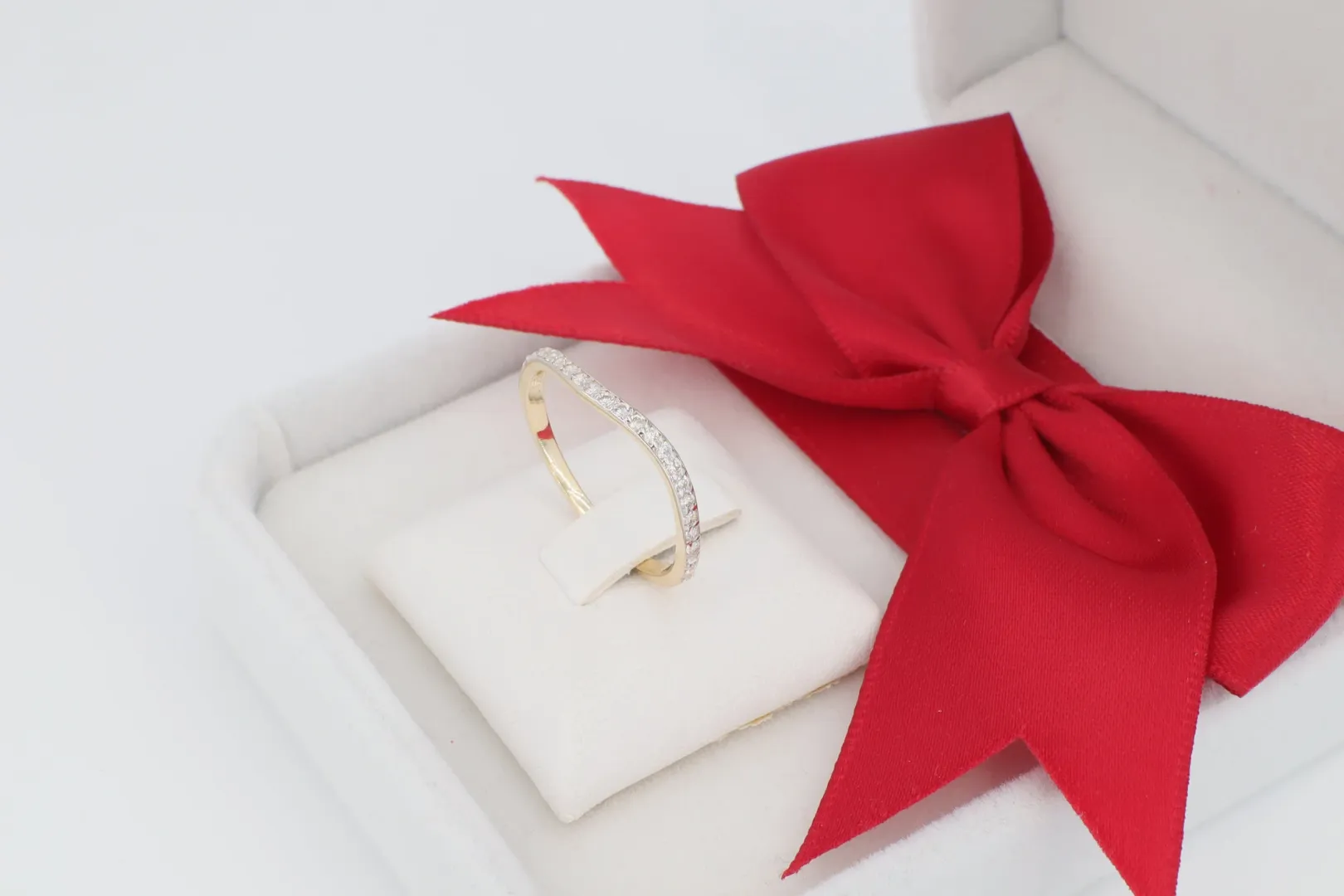 Ívelt Kősor: A gyűrű felső felén egy lágyan ívelt vonalban berakott cirkónia kő sor fut végig. Ez az enyhe hullámvonal adja a gyűrű egyedi karakterét.