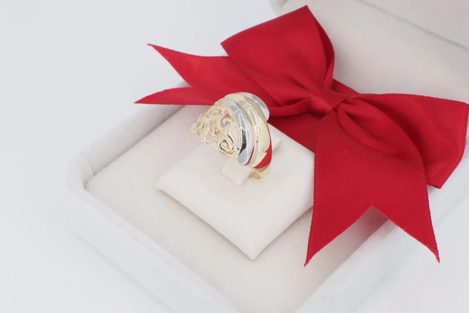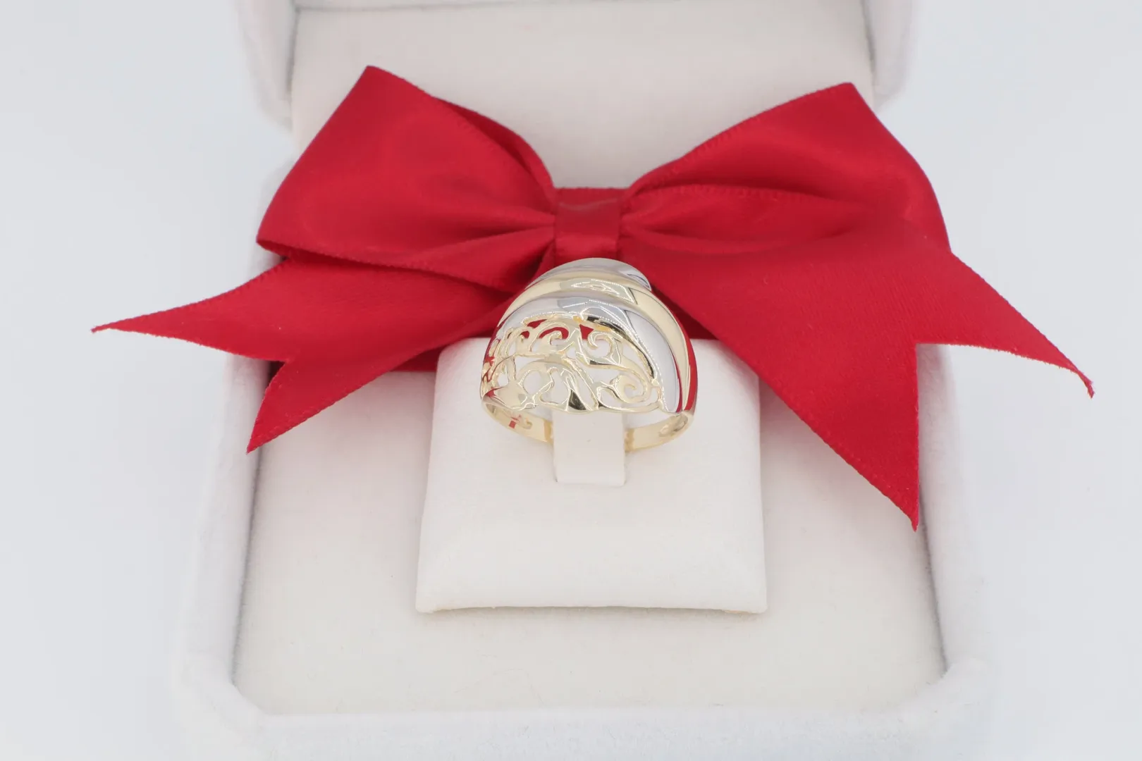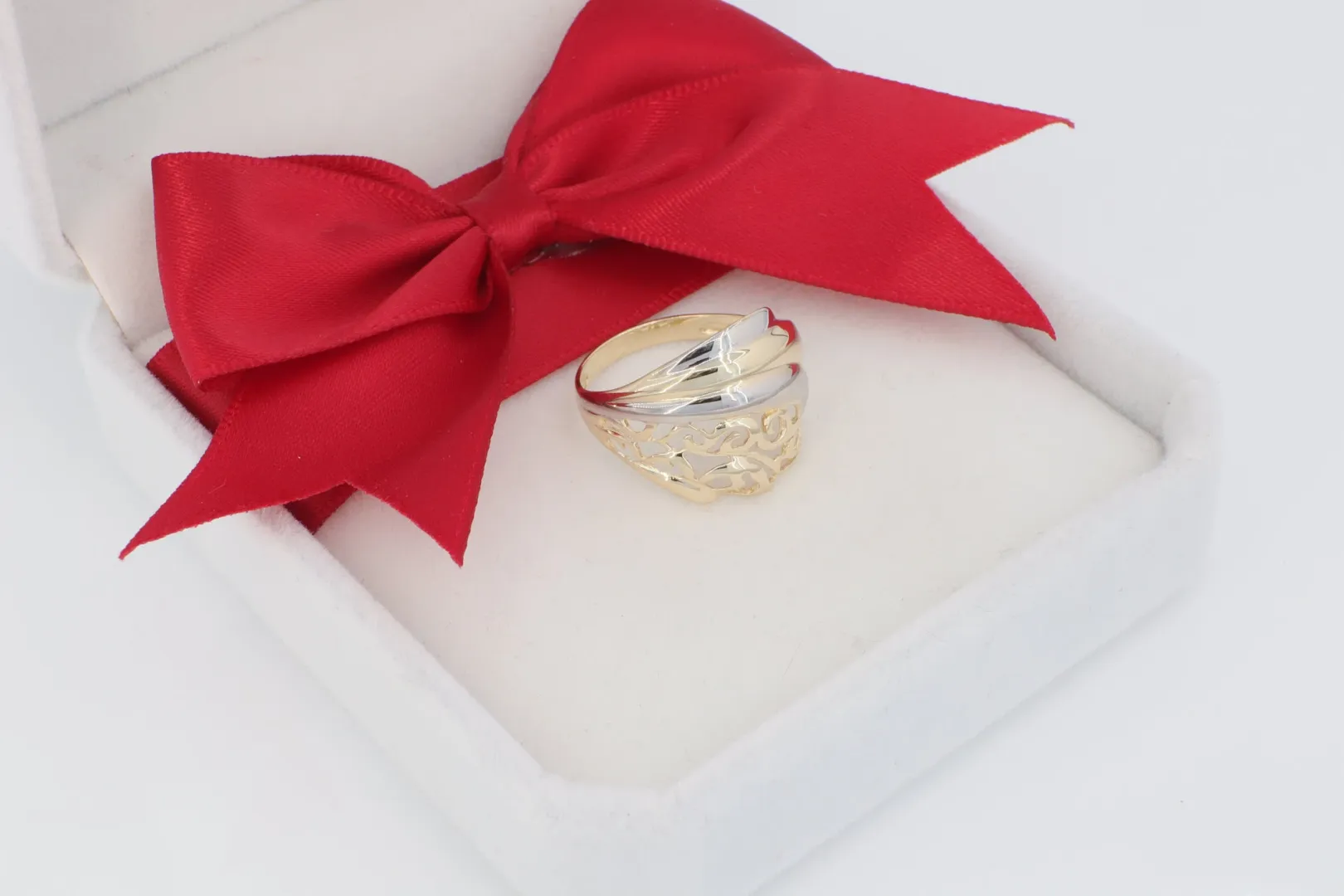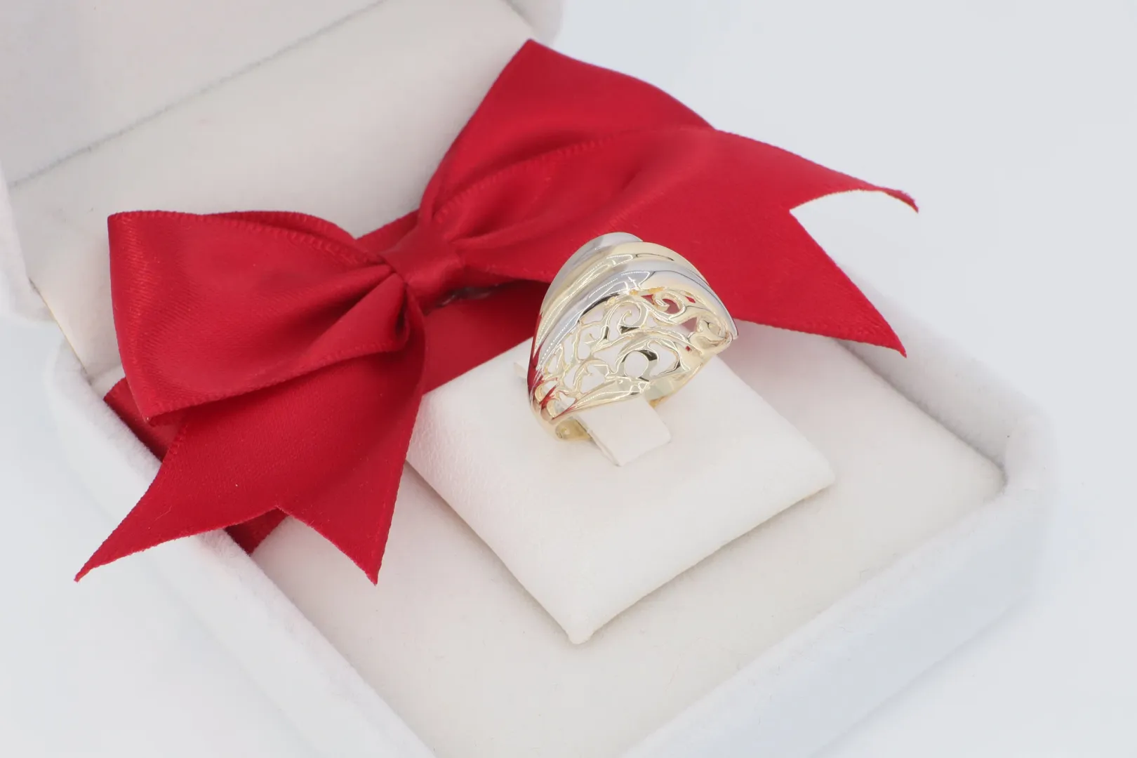 Kinek Ajánljuk? Ajánlott mindazoknak, akik egy feltűnő méretű, gazdagon áttört, kéttónusú és rendkívül elegáns, 14 karátos arany gyűrűt keresnek, amely a kézműves ékszerek hangulatát idézi.