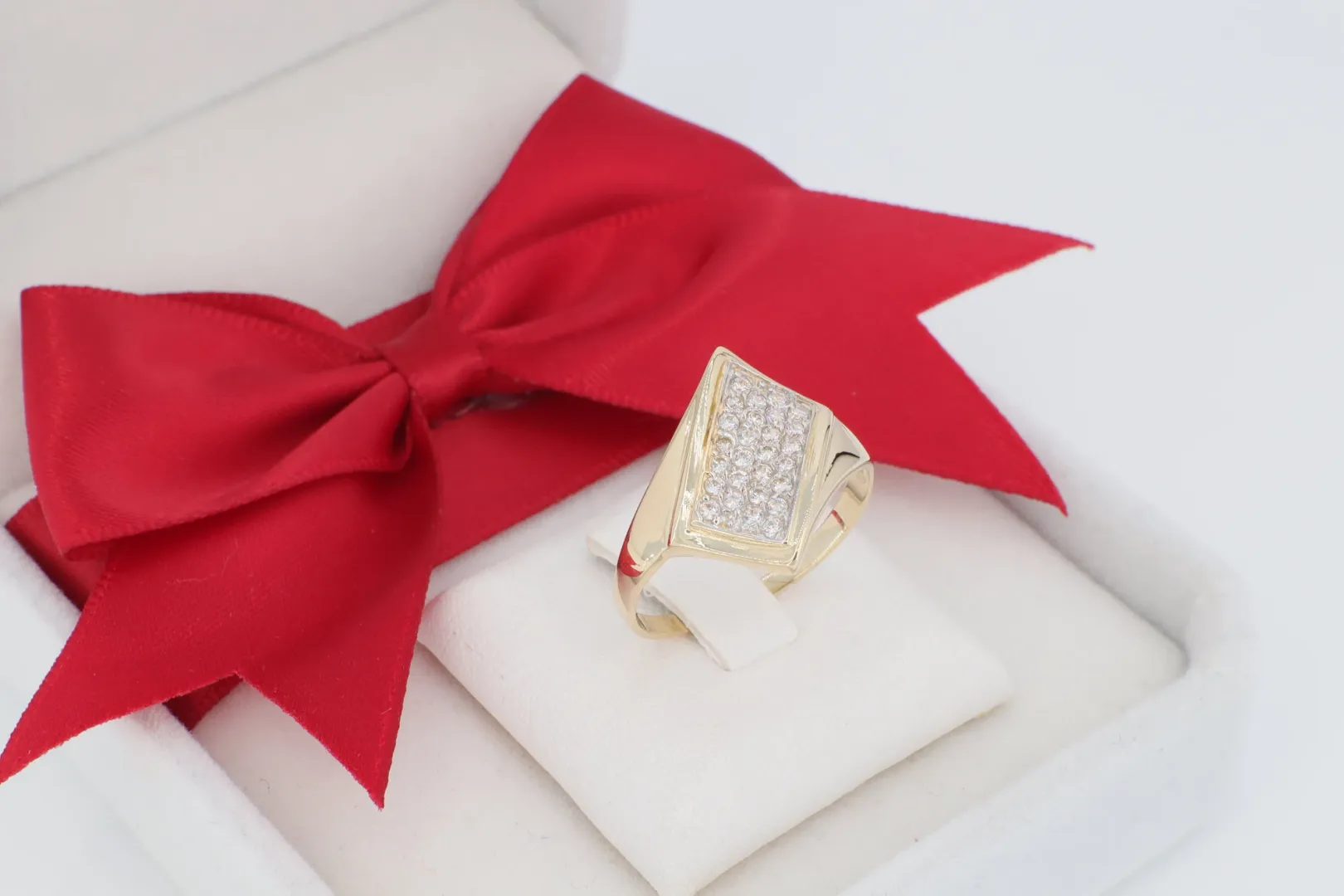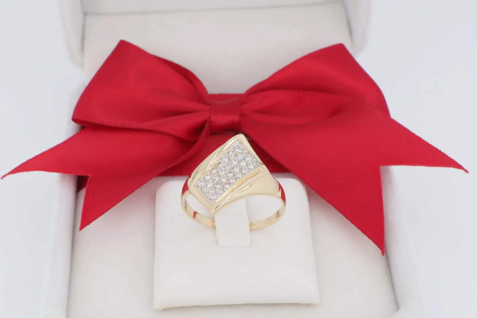 Feltűnő Trapéz Forma: A gyűrű feje nagyméretű, modern, trapéz alakú kialakítással bír, amely látványos csillogást biztosít viselőjének.
