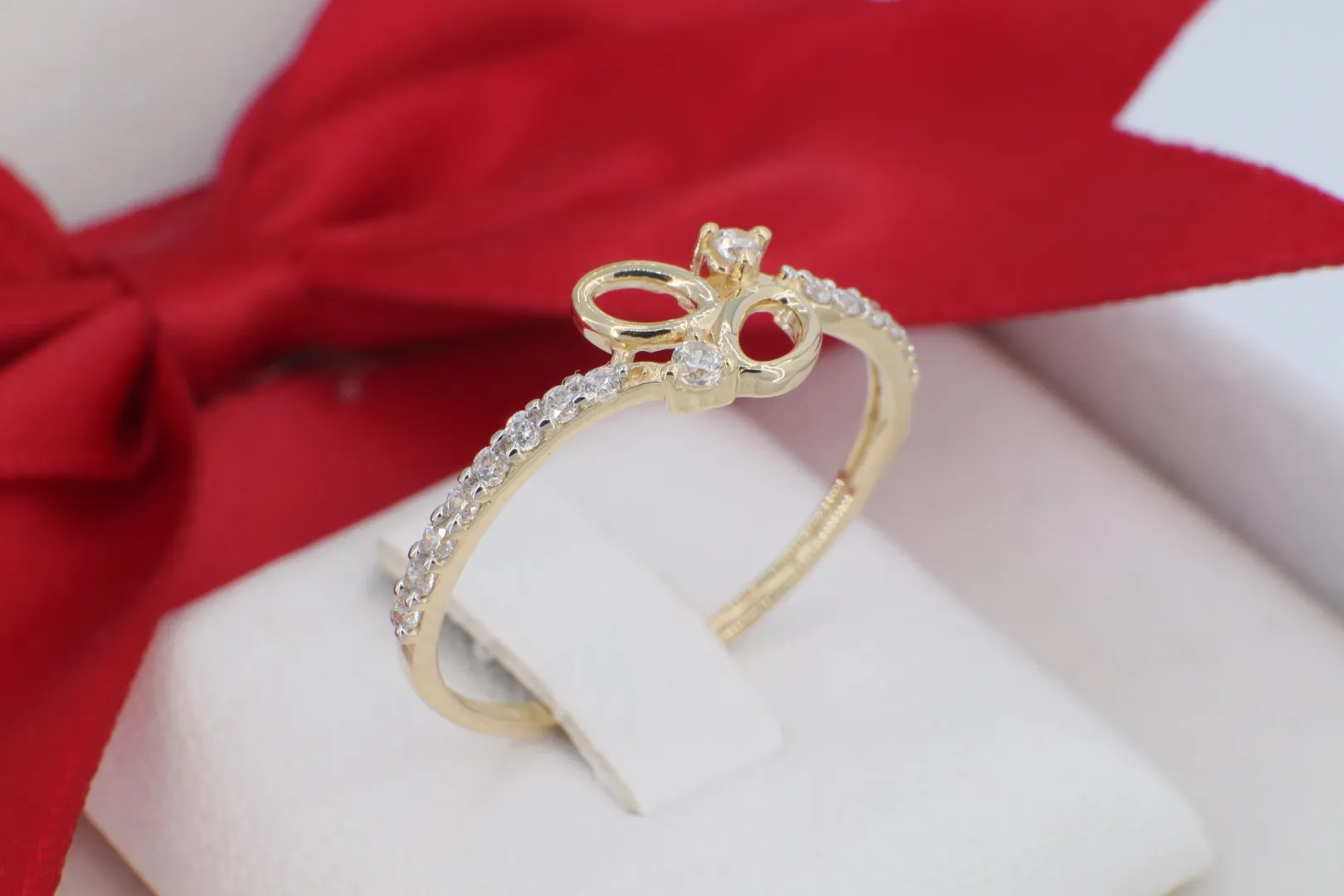 A GY2132-es sorszámú ékszer a modern formatervezés és a klasszikus ragyogás izgalmas találkozása. Ez a gyűrű egy különleges, egymásba fonódó, "csavart" motívummal hívja fel magára a figyelmet, amely dinamizmust és mélységet ad a designnak. Az aszimmetrikus ívek játéka nemcsak moderné teszi a darabot, hanem vizuálisan is rendkívül érdekessé: az egyik ág sima és tükörfényes, míg a másik szikrázó kövekkel díszített, így teremtve meg az egyensúlyt a nemesfém és a kövek csillogása között.