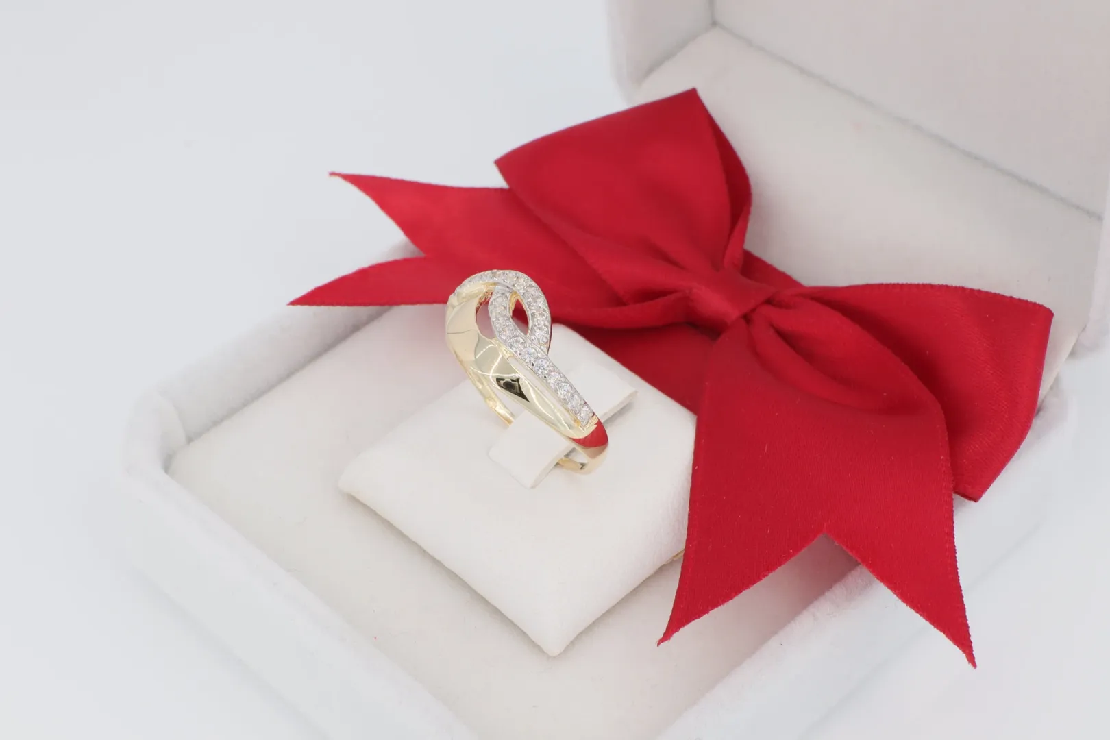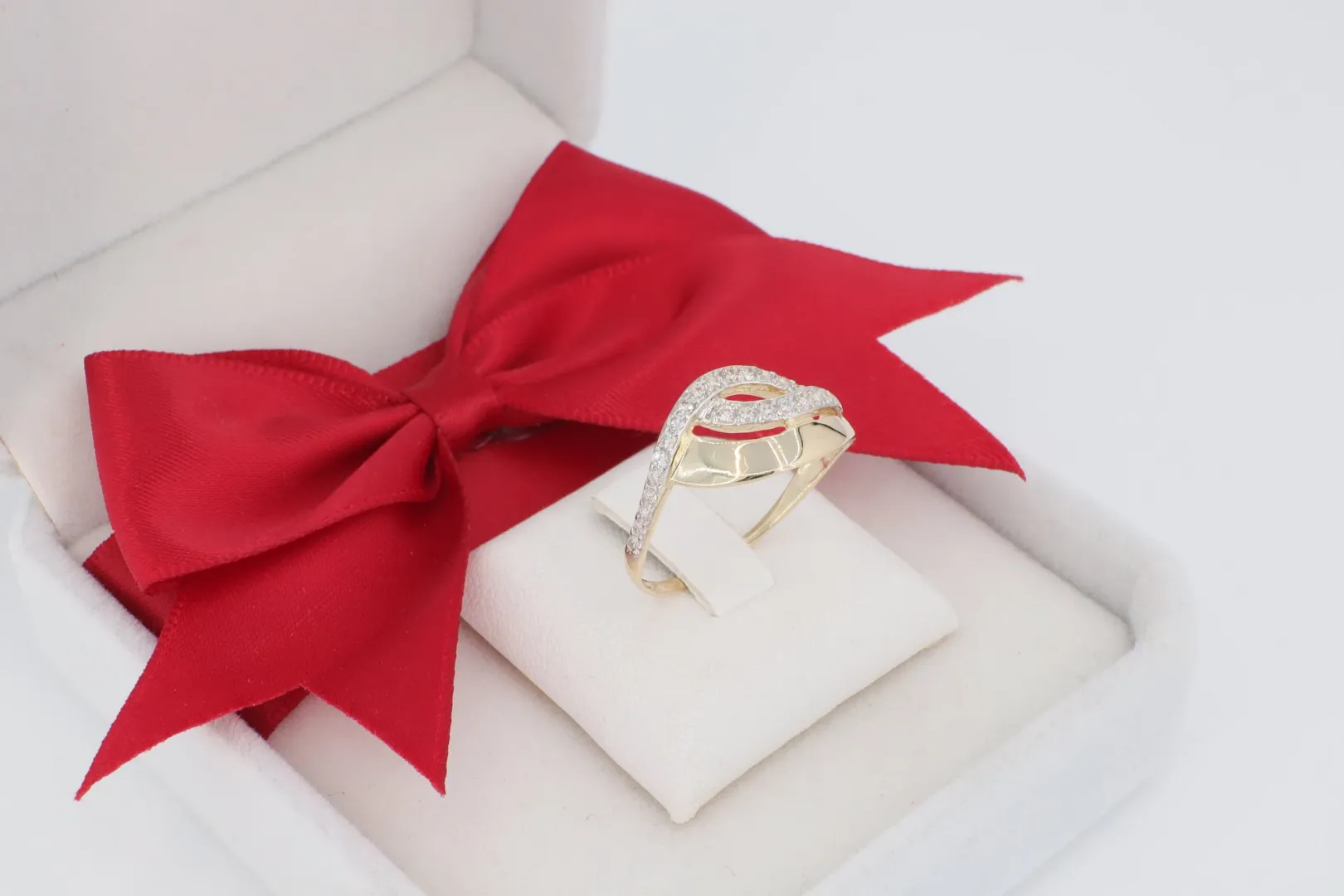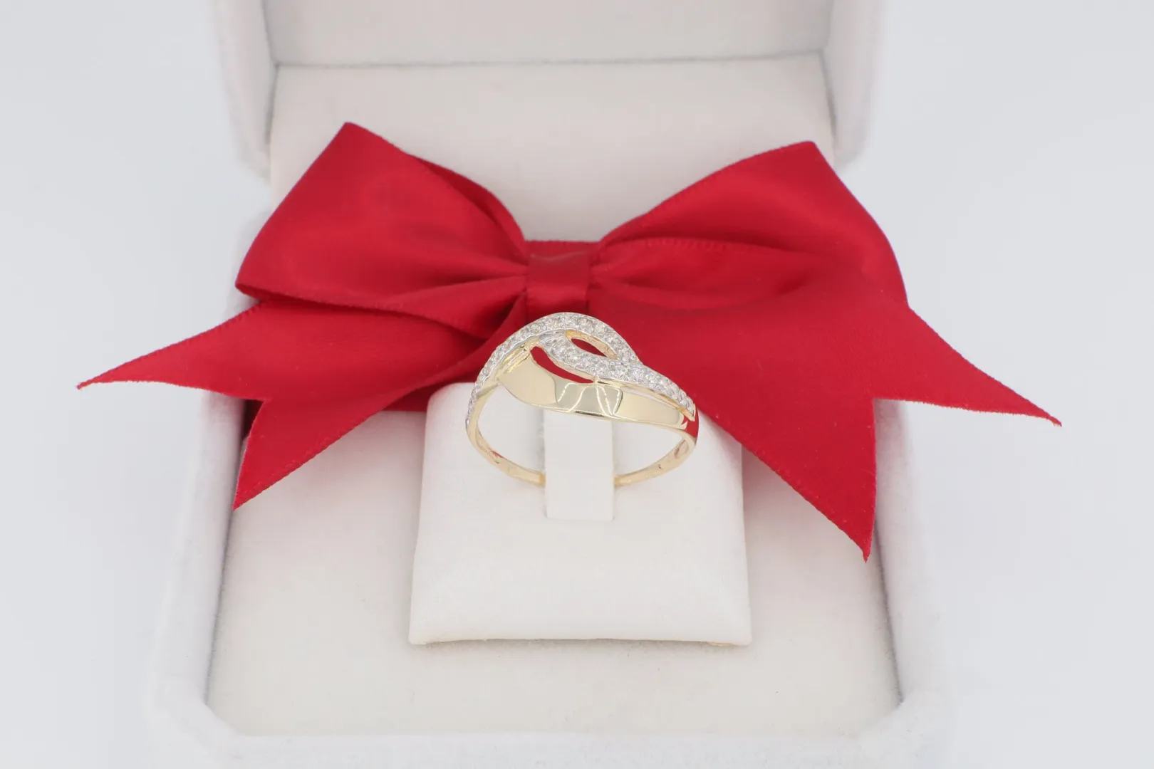 A GY0683 14 karátos arany gyűrű a modern vonalvezetést és a romantikus szimbolikát ötvözi. A hullámzó sávokból álló, hurkolt design az összekapcsolódás és a dinamikus szeretet jelképe.