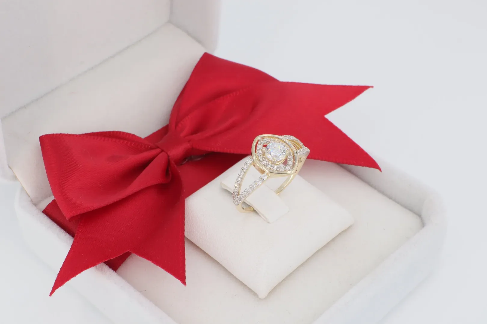 A GY2117 női arany gyűrű egy rendkívül elegáns, virág- vagy levélmotívumot idéző formavilággal hódít, amely tökéletes választás azoknak, akik a klasszikus, ugyanakkor különleges designú arany gyűrűket kedvelik. Ez a gyűrű a finom részleteket és a látványos kőberakást ötvözi.
