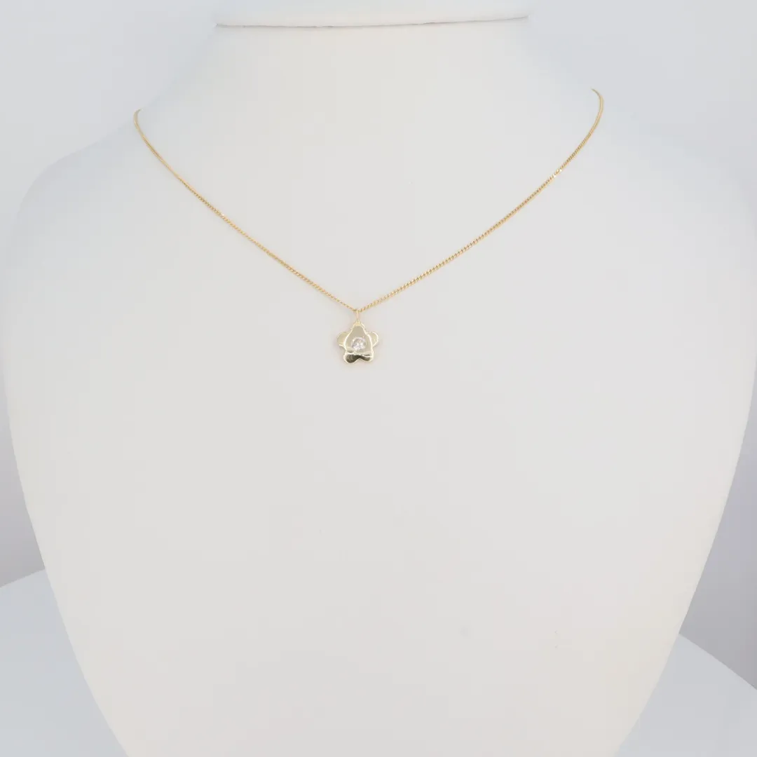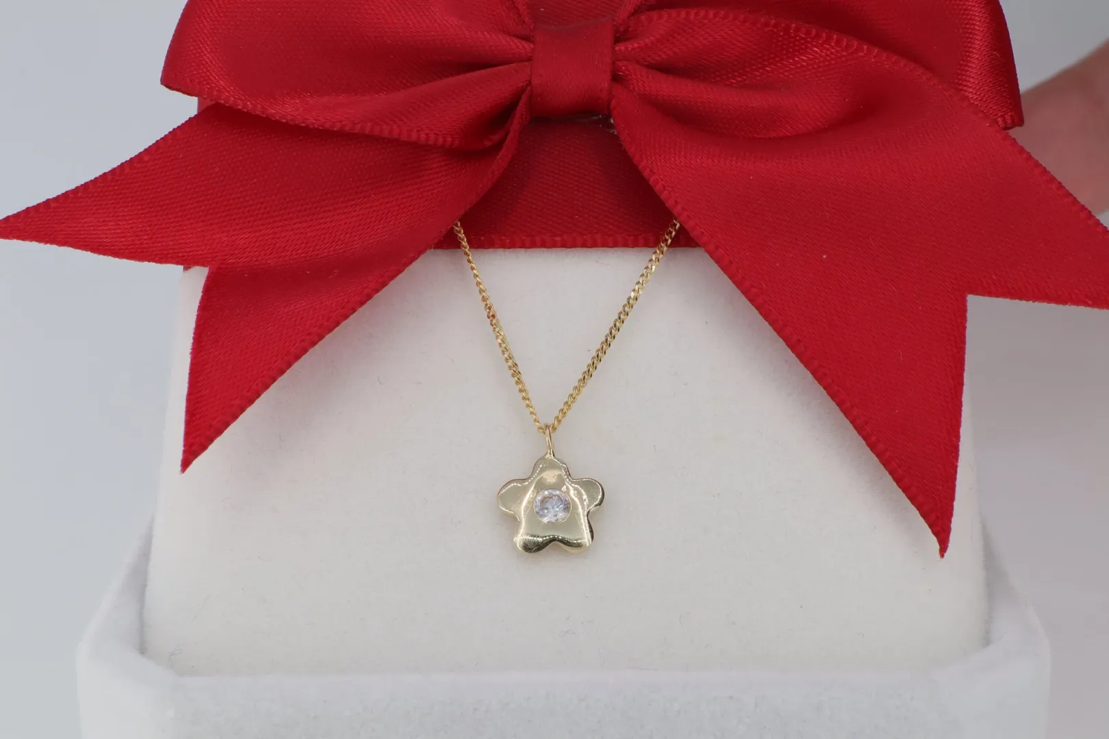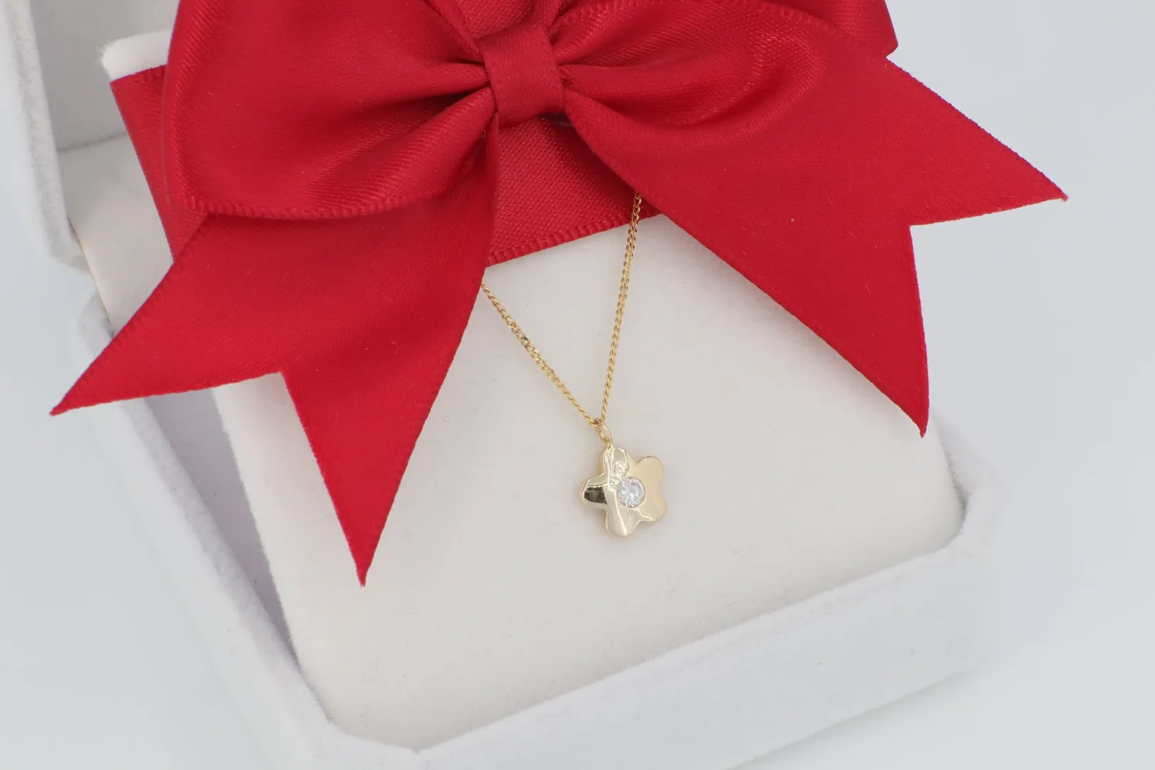 Készleten, várható szállítási idő: 2026.03.18. 14 karátos sárga arany nyaklánc, divatos arany virág medállal, középen egy csillogó cirkónia kővel