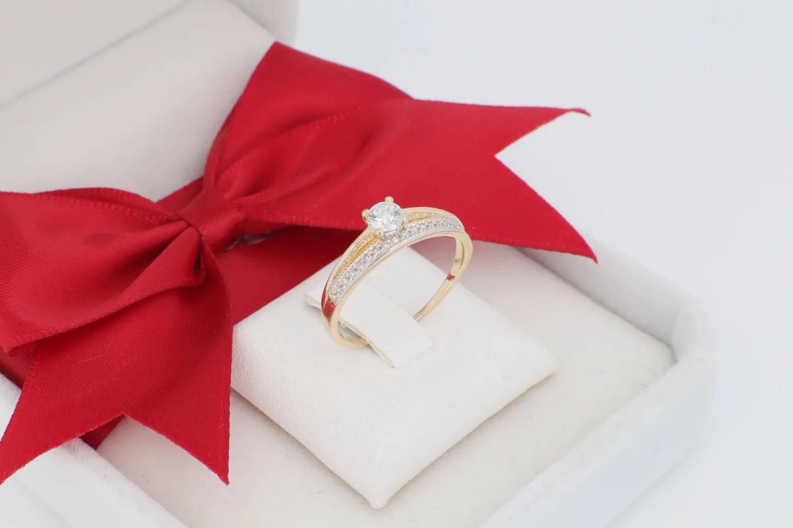 A GY2039 női arany gyűrű a klasszikus szoliter elrendezést ötvözi a modern, szélesebb sín luxusával. Ez a 14 karátos arany gyűrű ideális választás azoknak, akik egy feltűnő, ragyogó, de jól viselhető elegáns arany ékszert keresnek.
