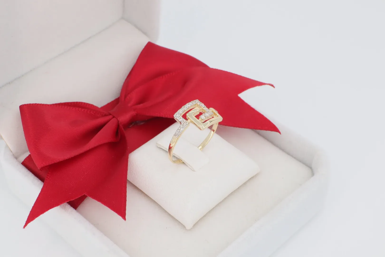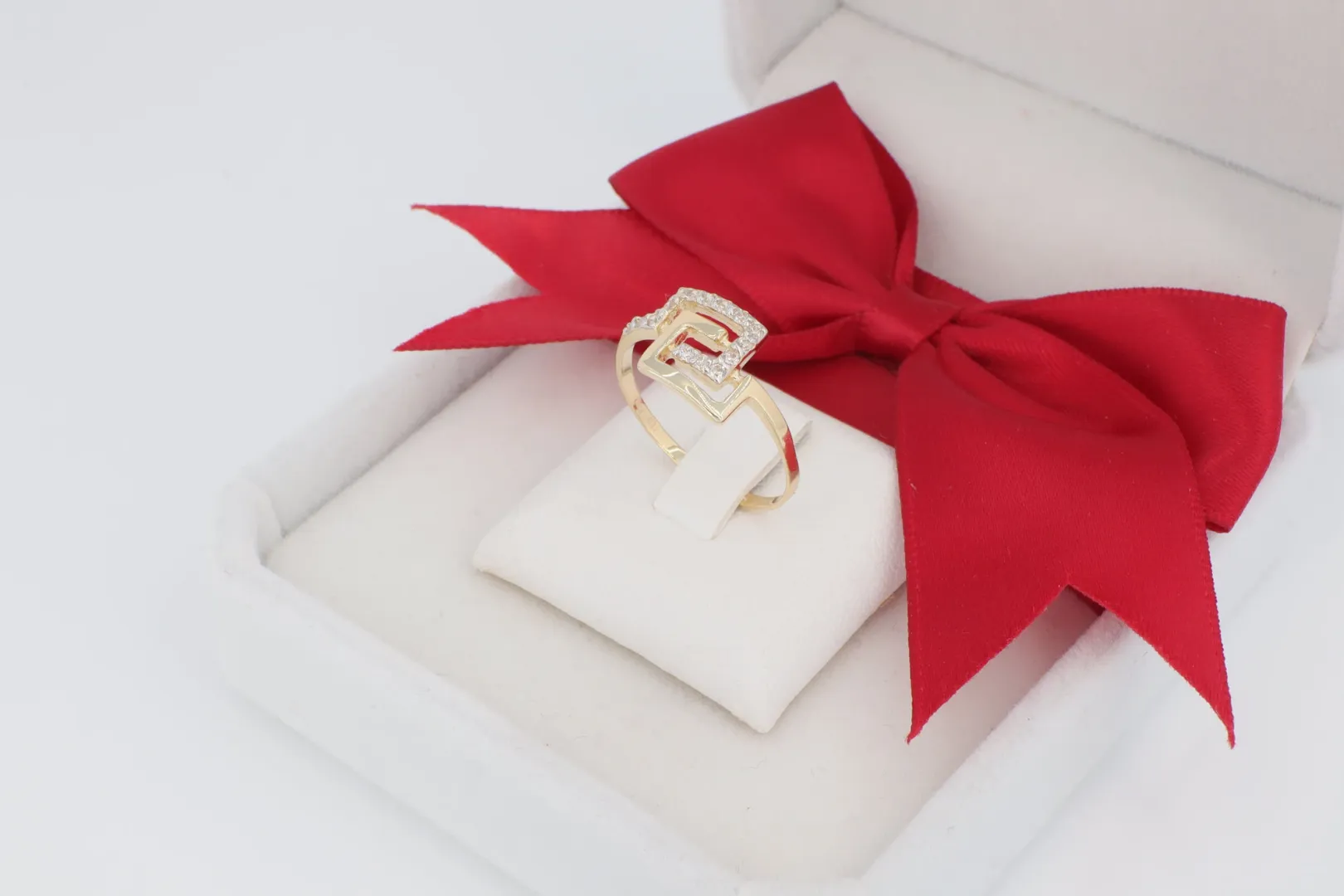 Ez a geometrikus 14K arany gyűrű ideális választás azoknak, akik egy különleges, figyelemfelkeltő ékszerre vágynak, legyen szó irodai, vagy esti elegáns eseményről.