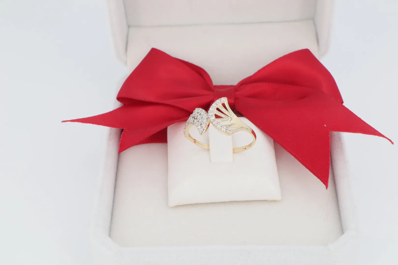 A 2112-es, 14 karátos arany gyűrű egy igazi mestermű, amely ötvözi a természet inspirálta formákat a csillogó eleganciával. A gyűrű különleges, ívelt dizájnja egy finom, stilizált pillangó szárnyait idézi, melyek kecsesen ölelik körbe az ujjat. Az egyik szárny felületét apró, ragyogó cirkónia kövek díszítik, míg a másik szárny letisztult, polírozott aranyfelülete harmonikusan kiegészíti a csillogást. Ez az ékszer ideális választás azoknak, akik egyedi, mégis klasszikus darabra vágynak, amely finoman hangsúlyozza nőiességüket.