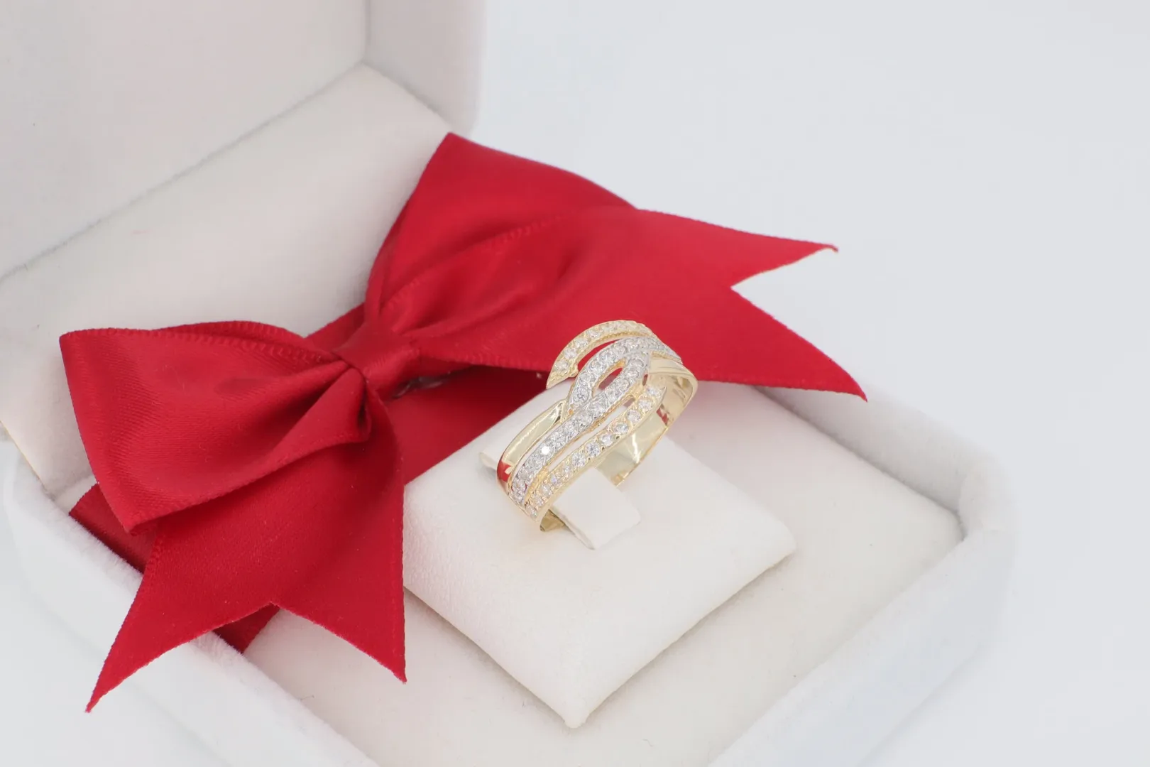 Felejthetetlen Ajándék Ez a pompás női arany gyűrű kiváló ajándék olyan hölgyeknek, akik szeretik a látványos, divatos és értékes 14K arany ékszereket. Tökéletes választás évfordulóra, születésnapra vagy más ünnepi alkalomra, ha igazán felejthetetlen meglepetést keres.