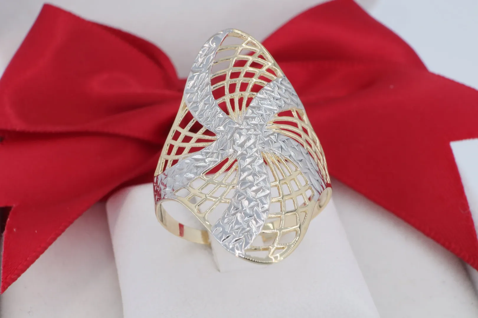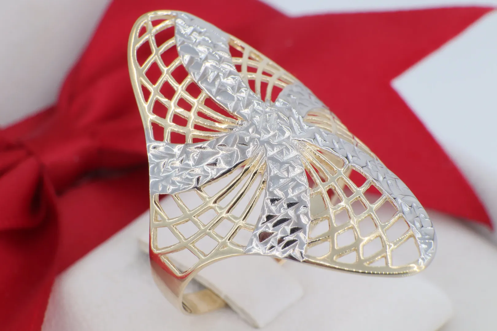 Különleges Figyelmességnek: Kiváló ajándék olyan hölgyeknek, akik szeretik az egyedi, művészi formavilágú ékszereket és a sárga-fehér arany kombinációját.
