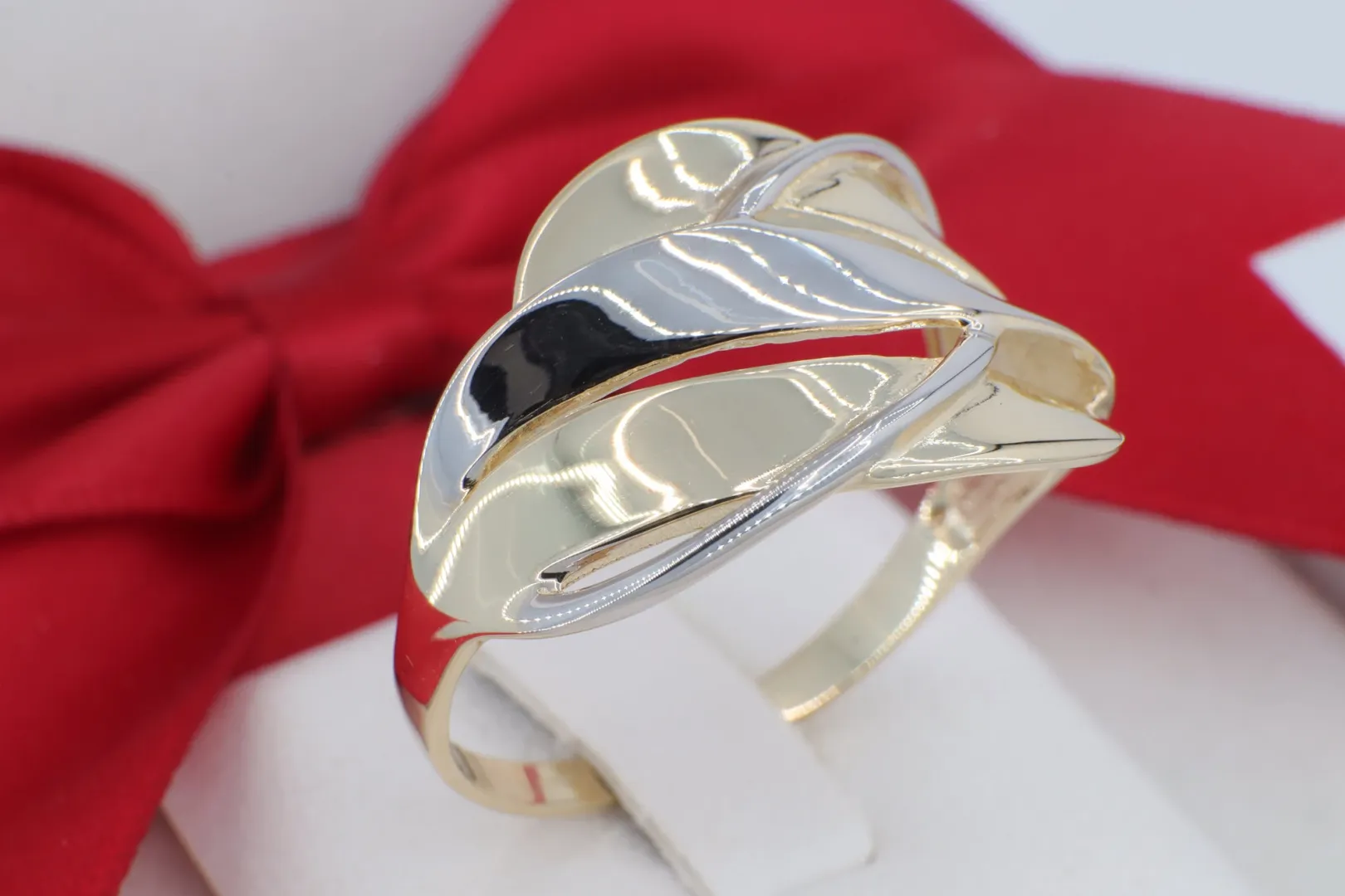Elegáns bicolor arany gyűrű áramló formával (gy1663)