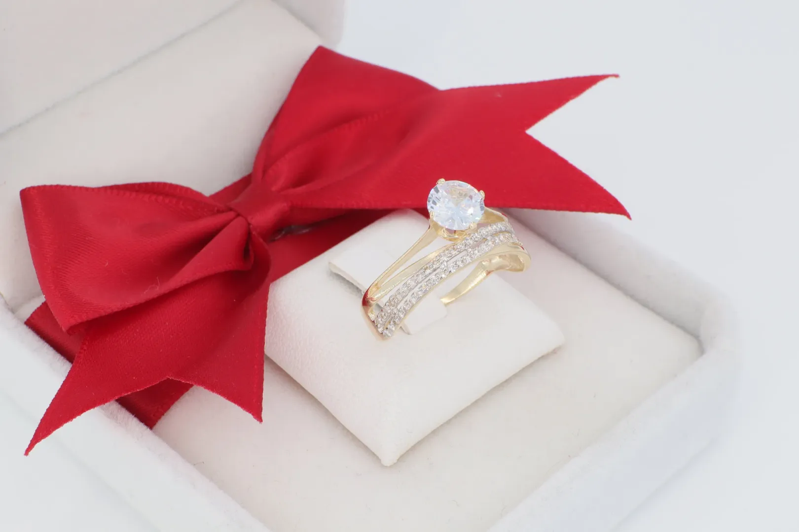 Ez a női arany gyűrű ideális azok számára, akik egyetlen darabban szeretnének elérni egy gazdag, rétegzett hatást, amely tökéletesen alkalmas statement ékszerként vagy egy megújult eljegyzési/jeggyűrű helyett.