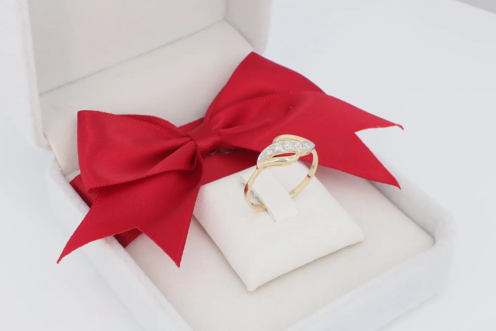 Ívelt Köves Arany Gyűrű: Dinamikus, elegáns vonalvezetés, amely követi a kéz mozgását.