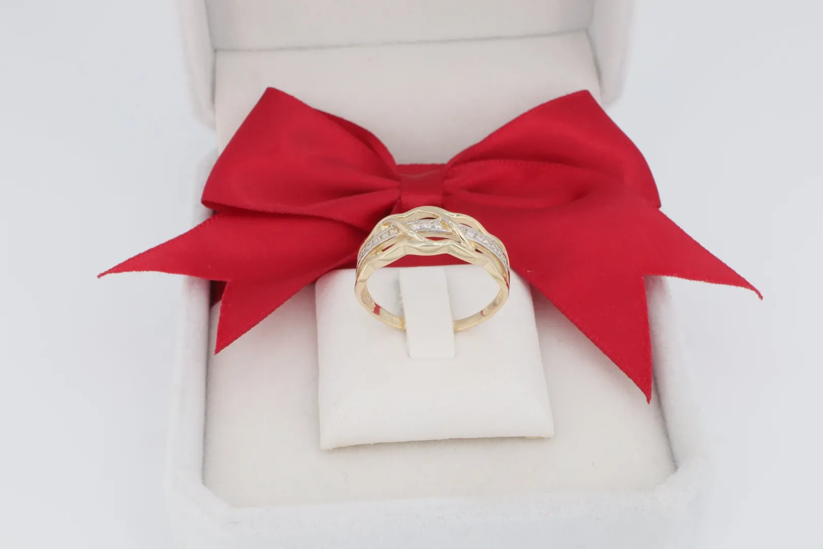 Ez a fonott 14K arany gyűrű ideális választás karikagyűrű hatású ajándéknak, évfordulóra, vagy egyszerűen egy olyan darabnak, amelyet minden nap büszkén visel. Elegáns megjelenésével minden szettet feldob.