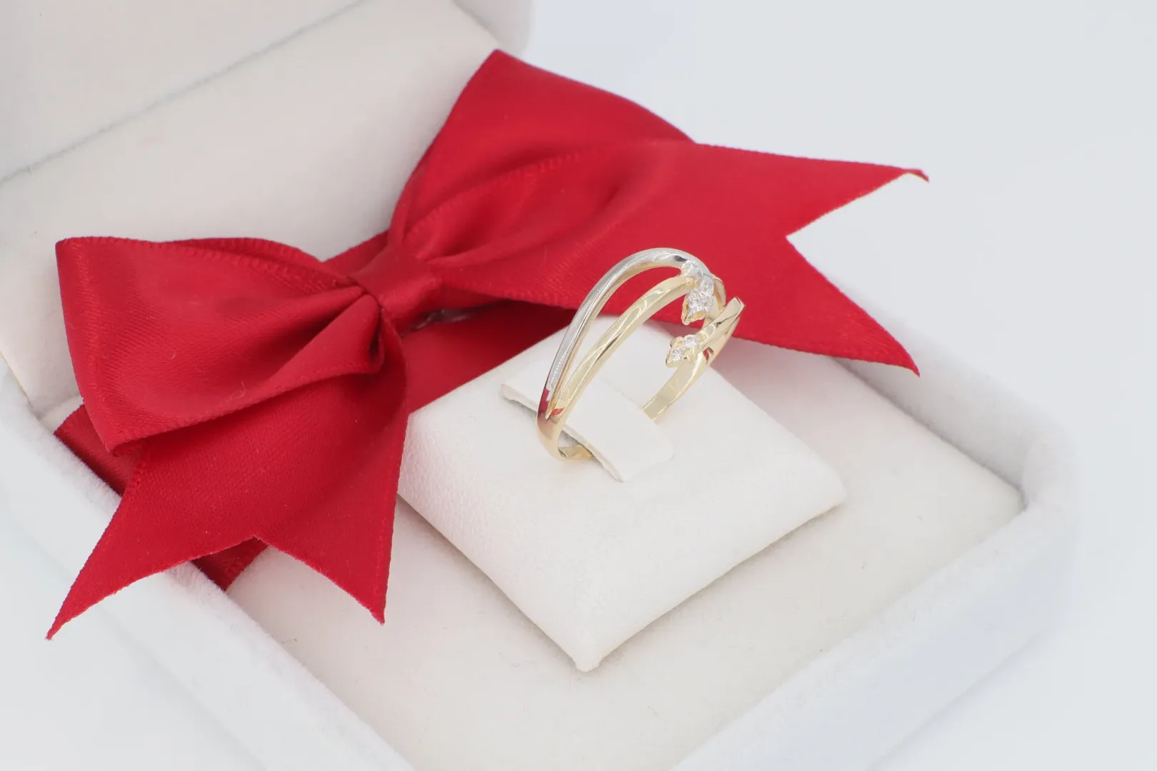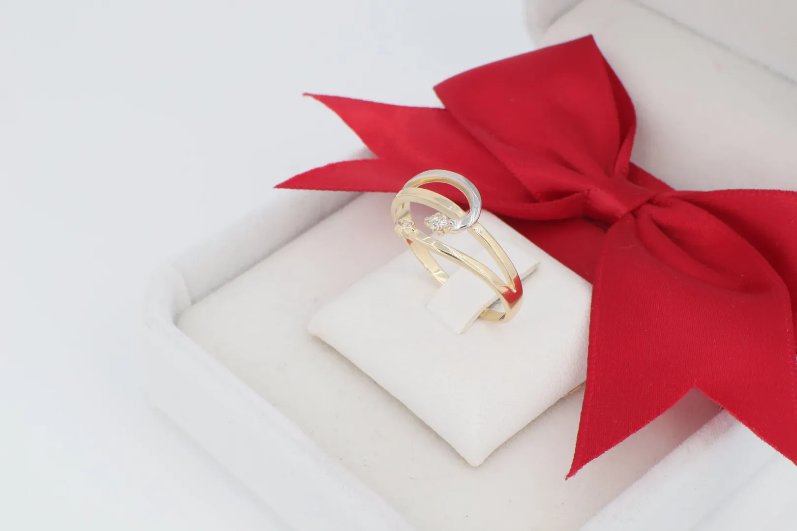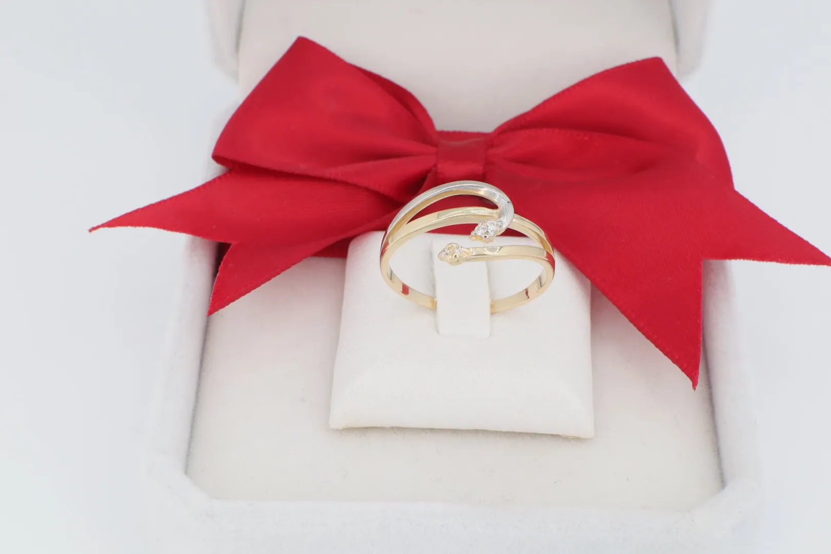 Dinamikus Fazon: A gyűrű két egymást keresztező sínpárból áll, melyek közül az egyik sárga, a másik pedig ródiummal bevont aranyból készült. Ez a kétszínű arany kialakítás rendkívül divatos és könnyen párosítható más ékszerekkel.