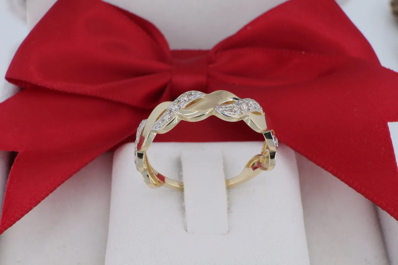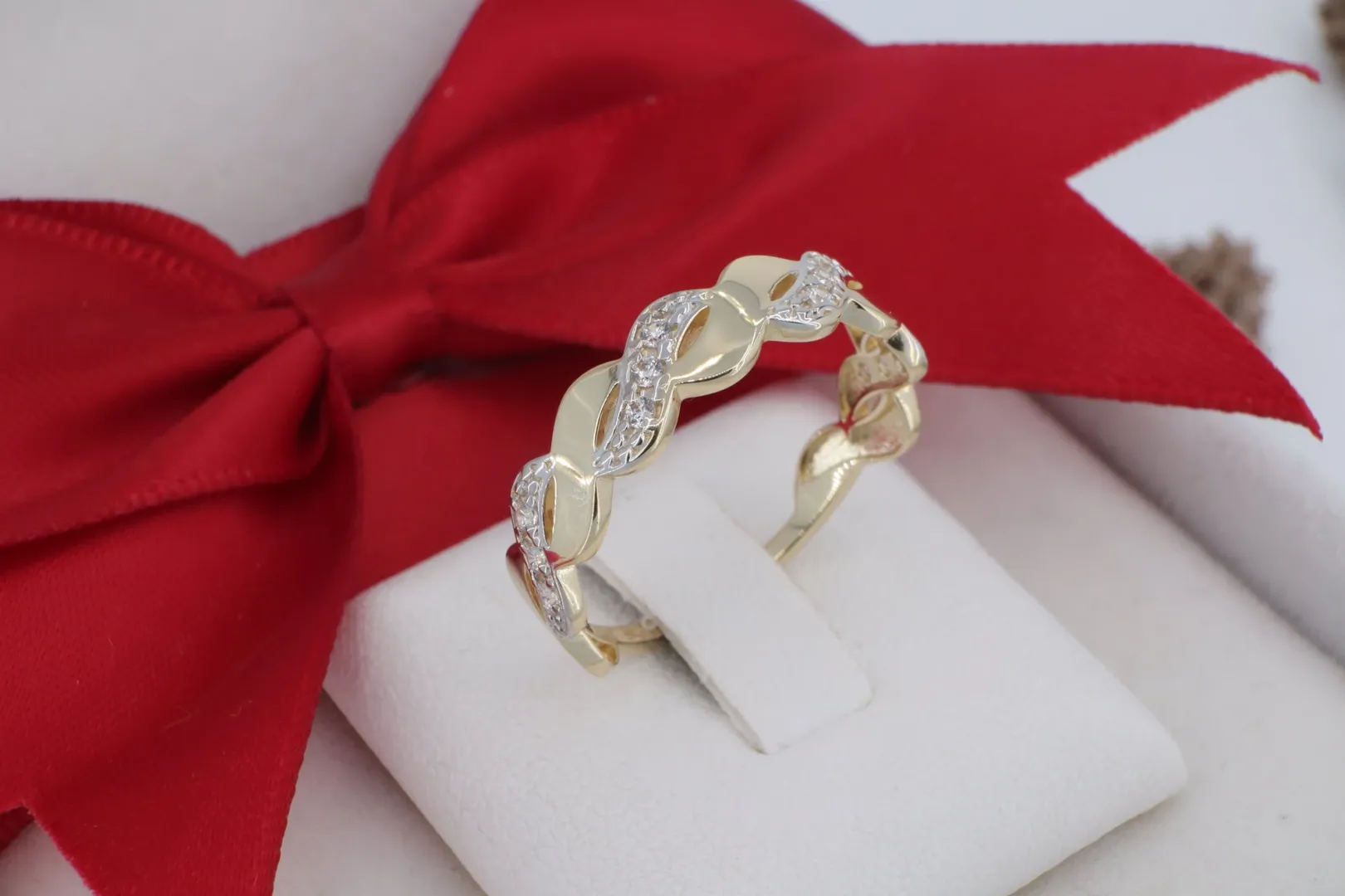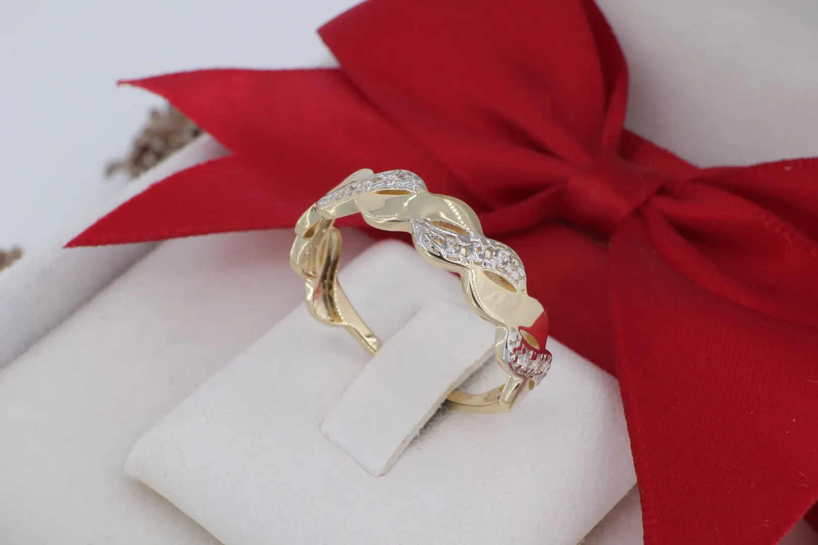 Ez a fonott mintájú arany gyűrű kiválóan alkalmas: