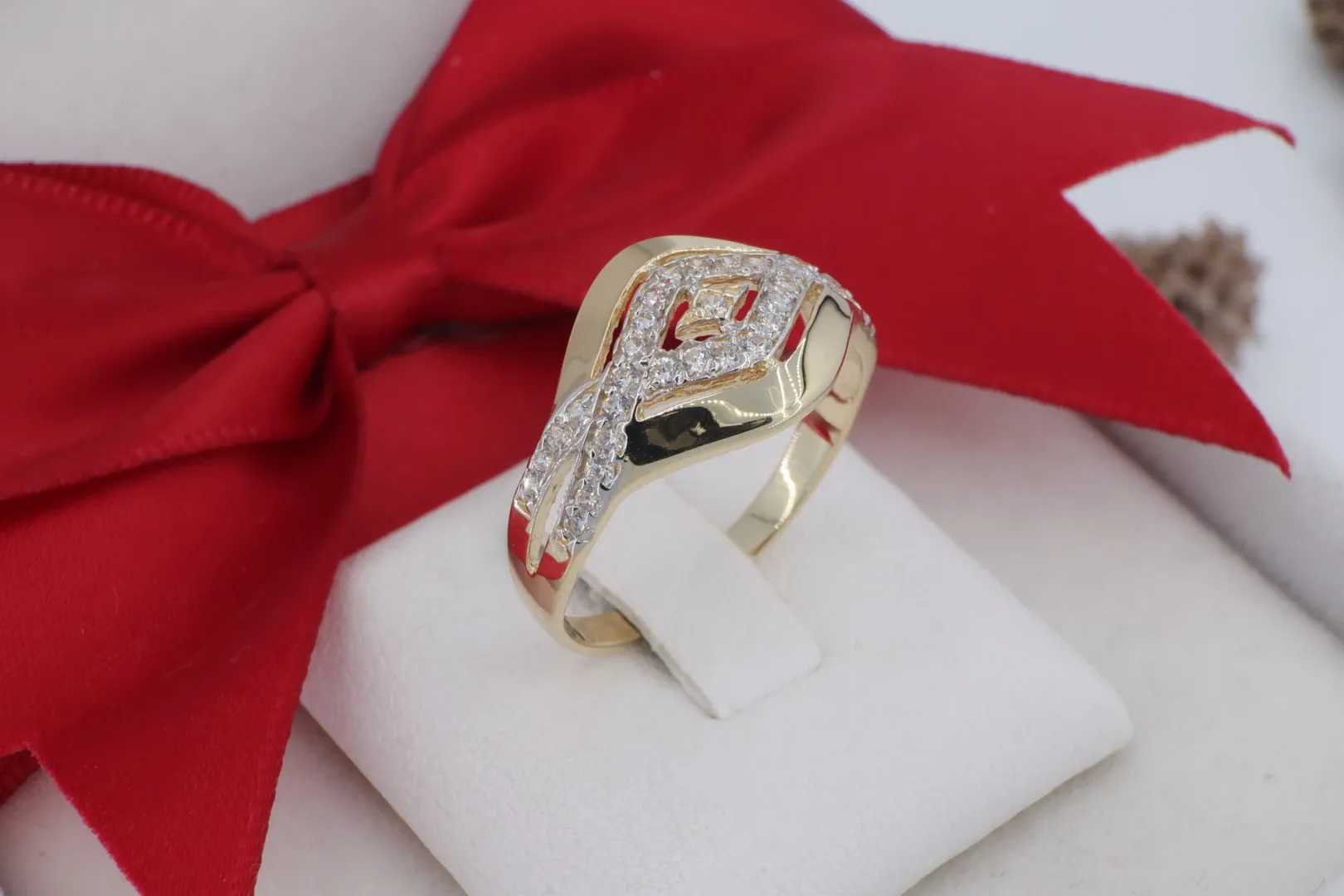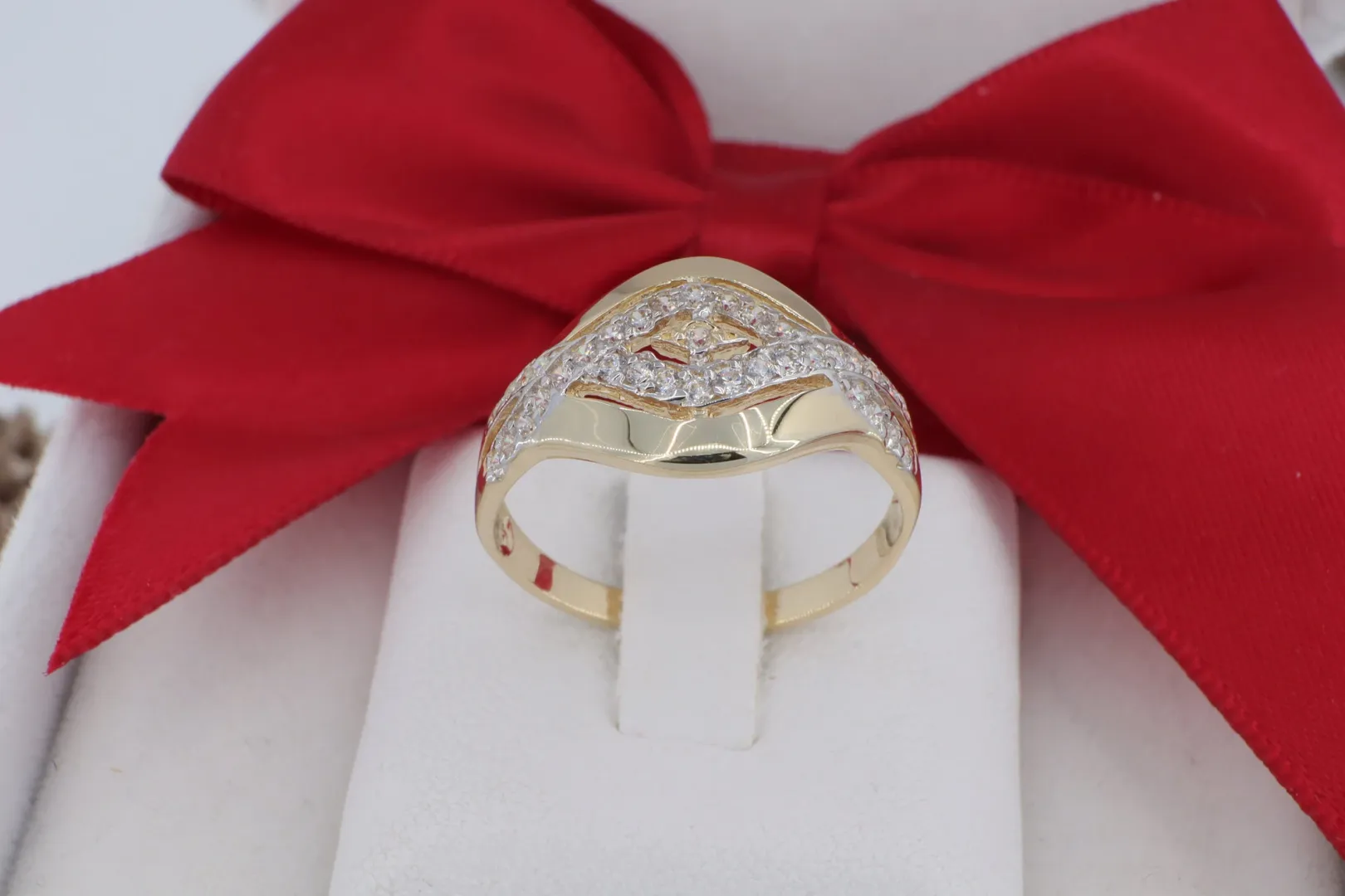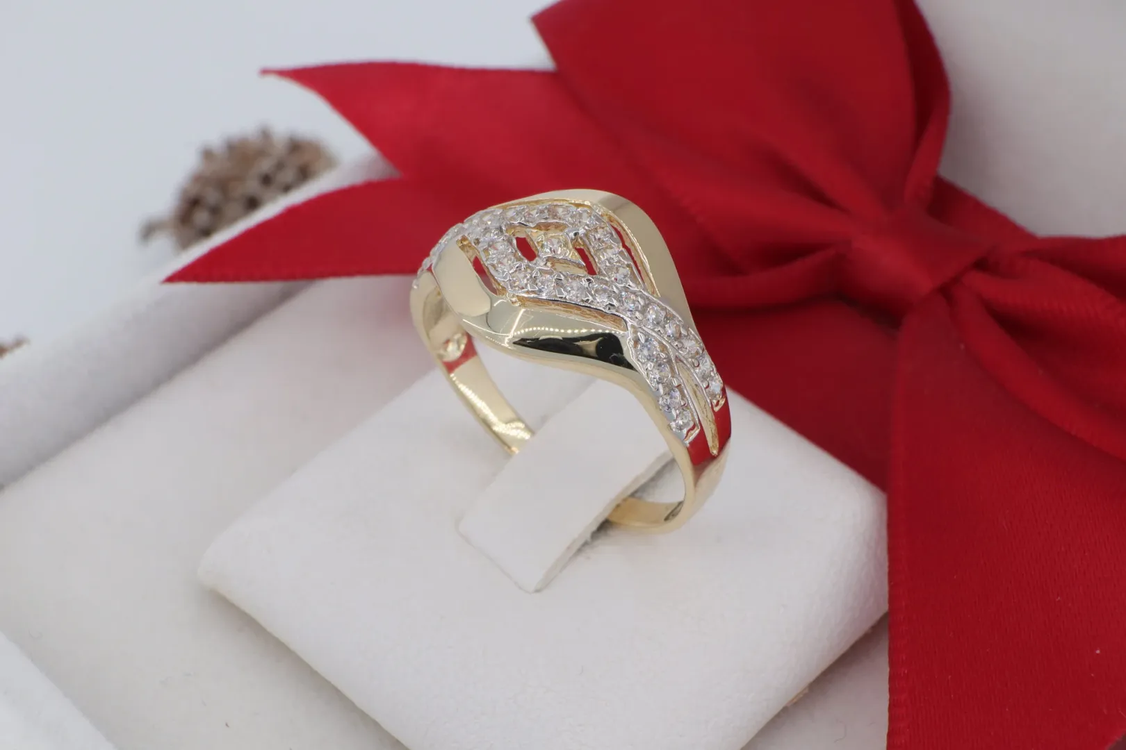 Íves Cirkónia Sor: A kövek elhelyezkedése követi a gyűrű dinamikus vonalvezetését, különleges fényjátékot hozva létre.