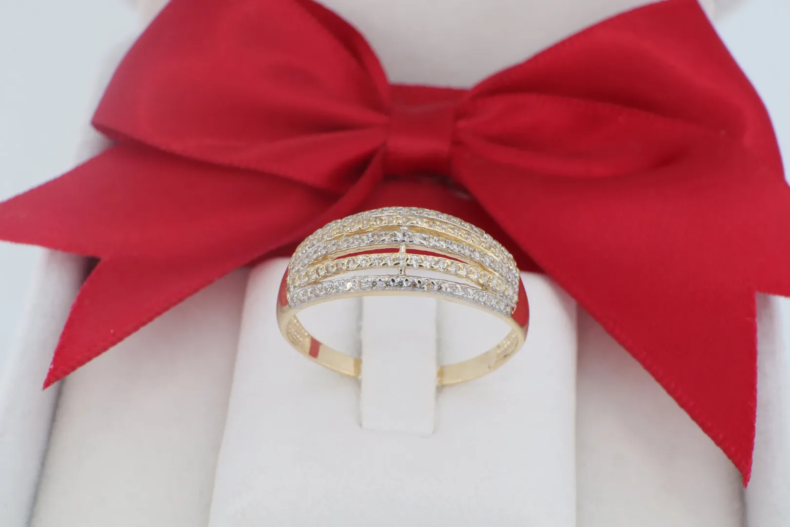 Exkluzív 14 Karátos Arany Gyűrű Ötsoros Cirkónia Kövezéssel (gy1347)