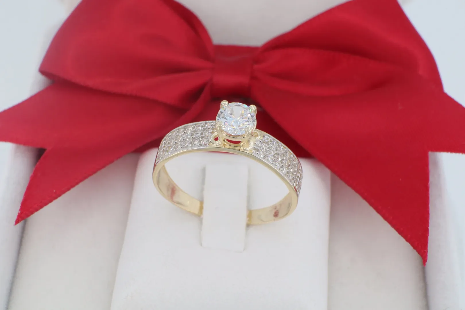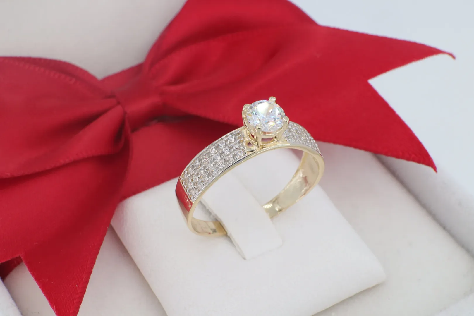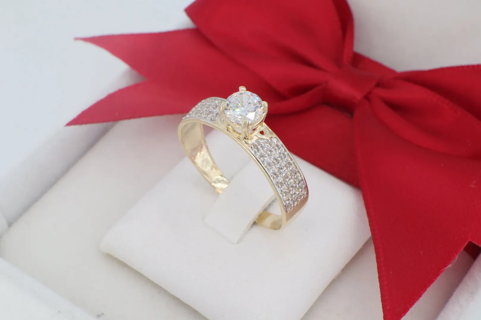 Exkluzív 14 Karátos Arany Szoliter Gyűrű Pavé Kövezett Sínnel (gy1934)
