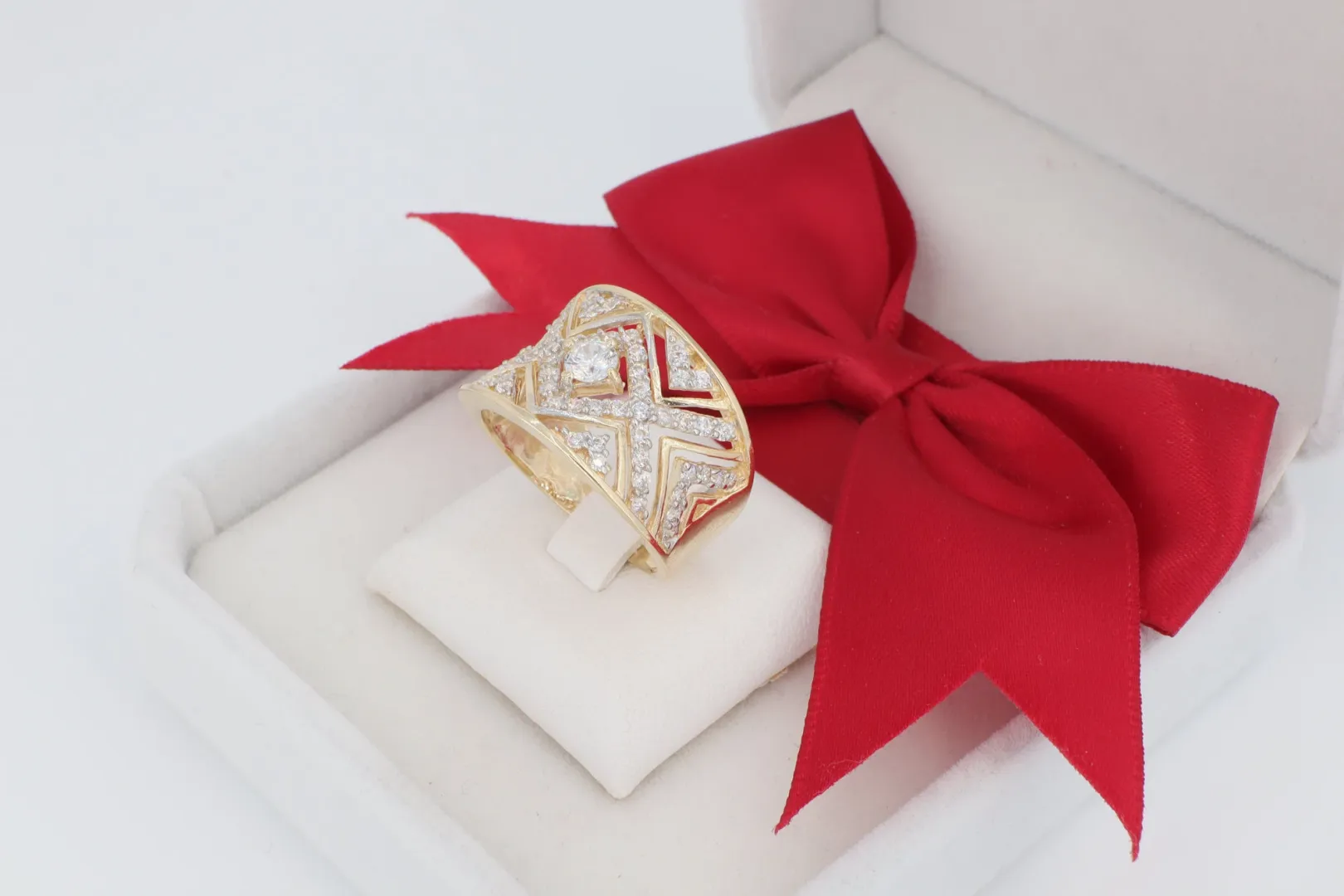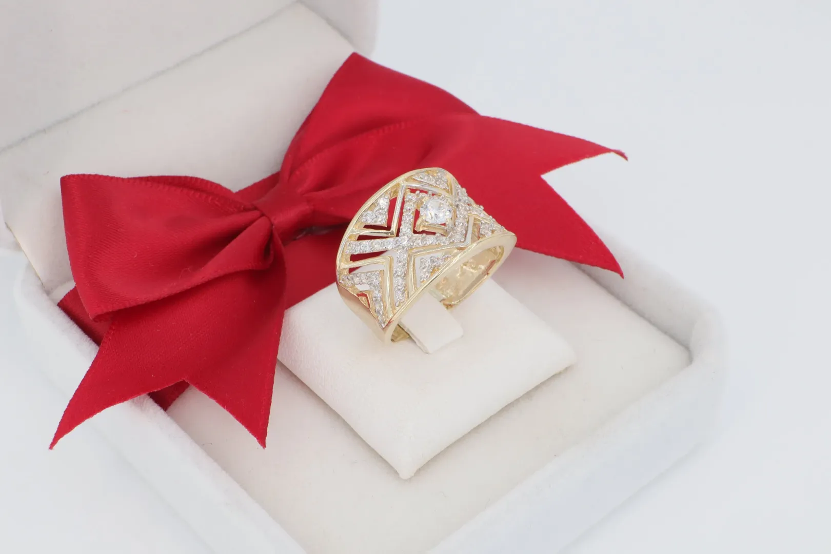 Ajándék nőknek: Lenyűgöző meglepetés azoknak, akik a széles, geometrikus és gazdagon köves cirkónia gyűrűk rajongói.