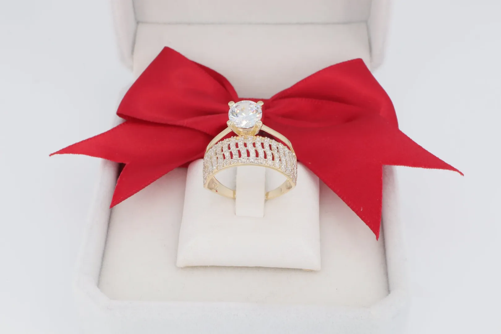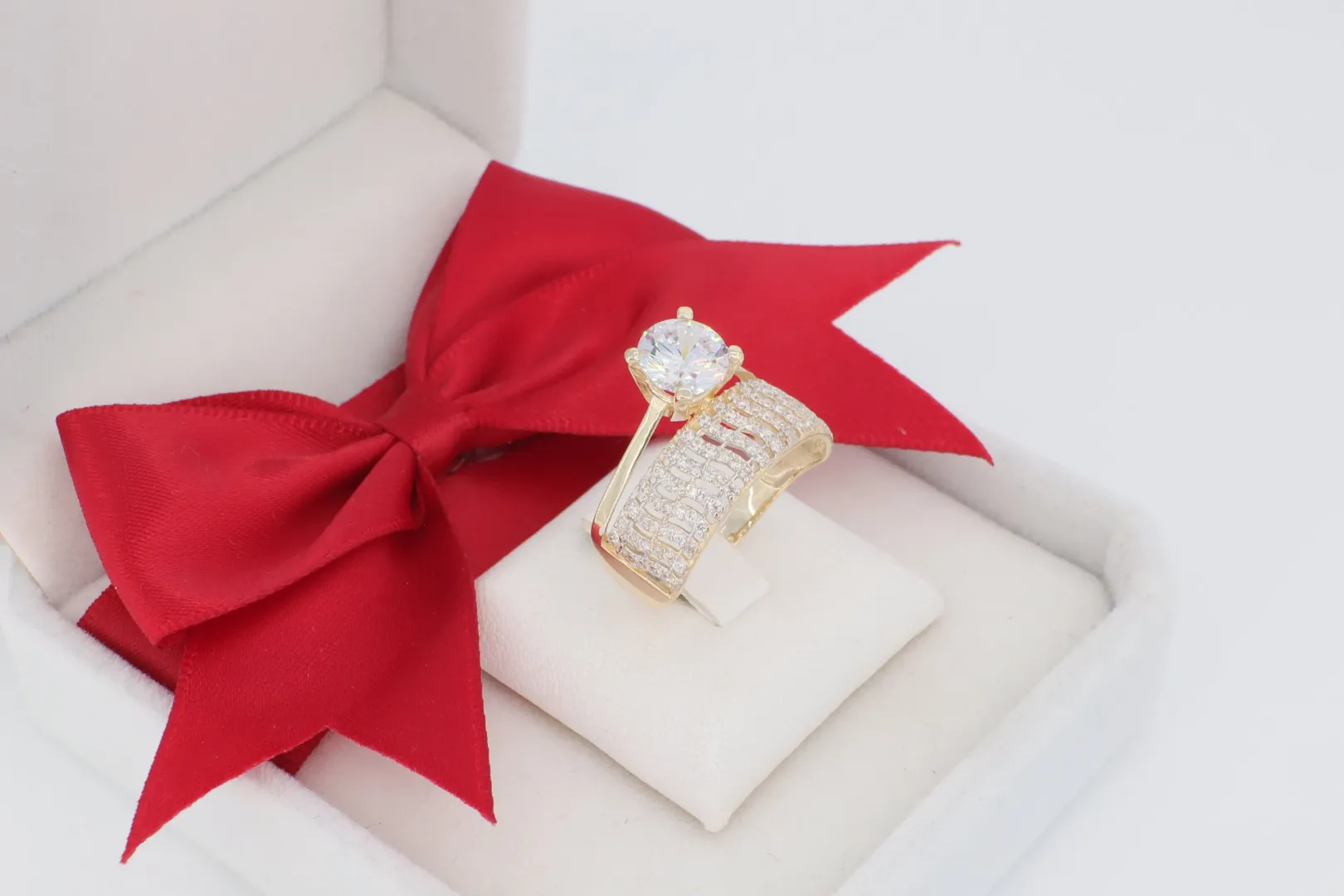 A GY1611 női arany gyűrű a feltűnő elegancia és a kifinomult luxus tökéletes ötvözete. Ez a látványos női gyűrű azok számára készült, akik nem elégednek meg a szolid megjelenéssel, hanem egy igazán csillogó arany gyűrűt keresnek, ami garantáltan magára vonzza a tekinteteket.