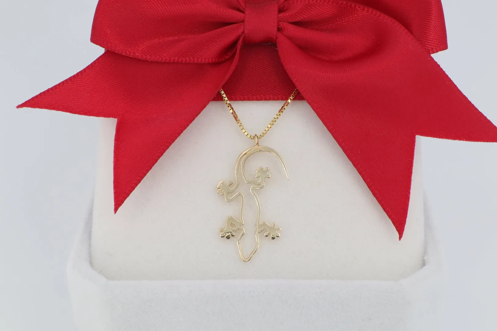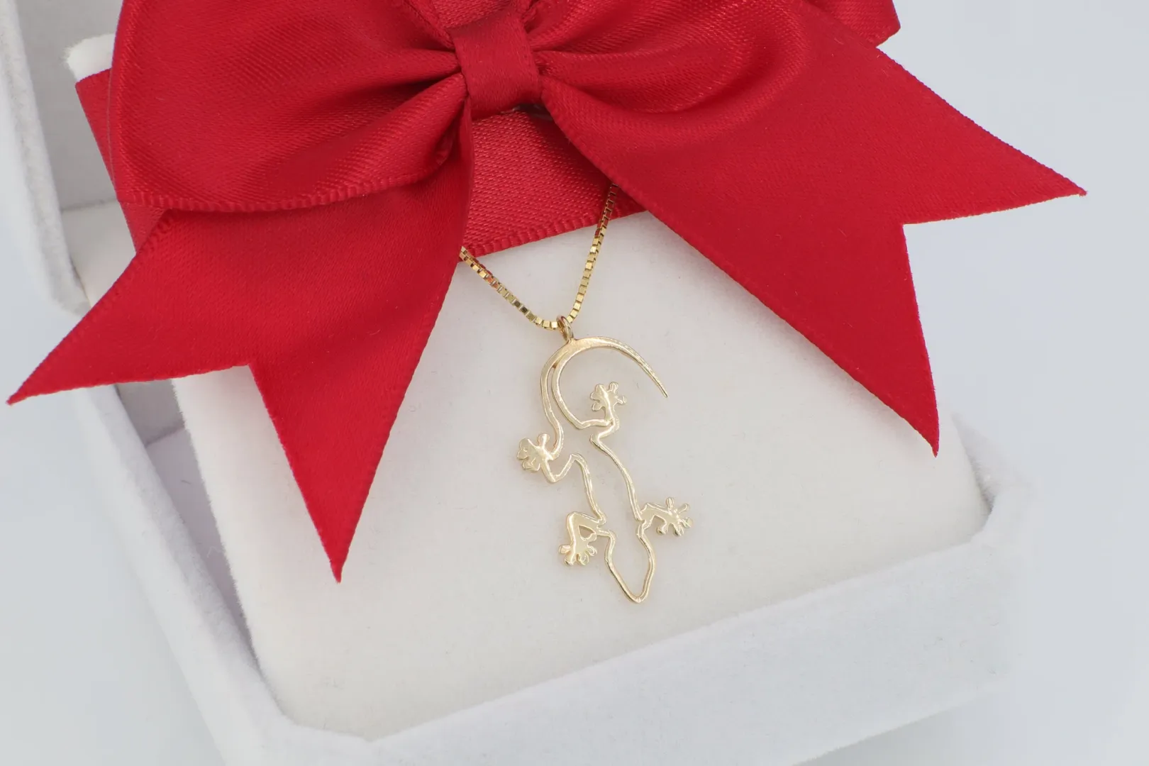Gekkó Motívum: A medál az állat finom, mozgásban lévő sziluettjét ábrázolja, a szerencse, a megújulás és az alkalmazkodás szimbólumát hordozva.