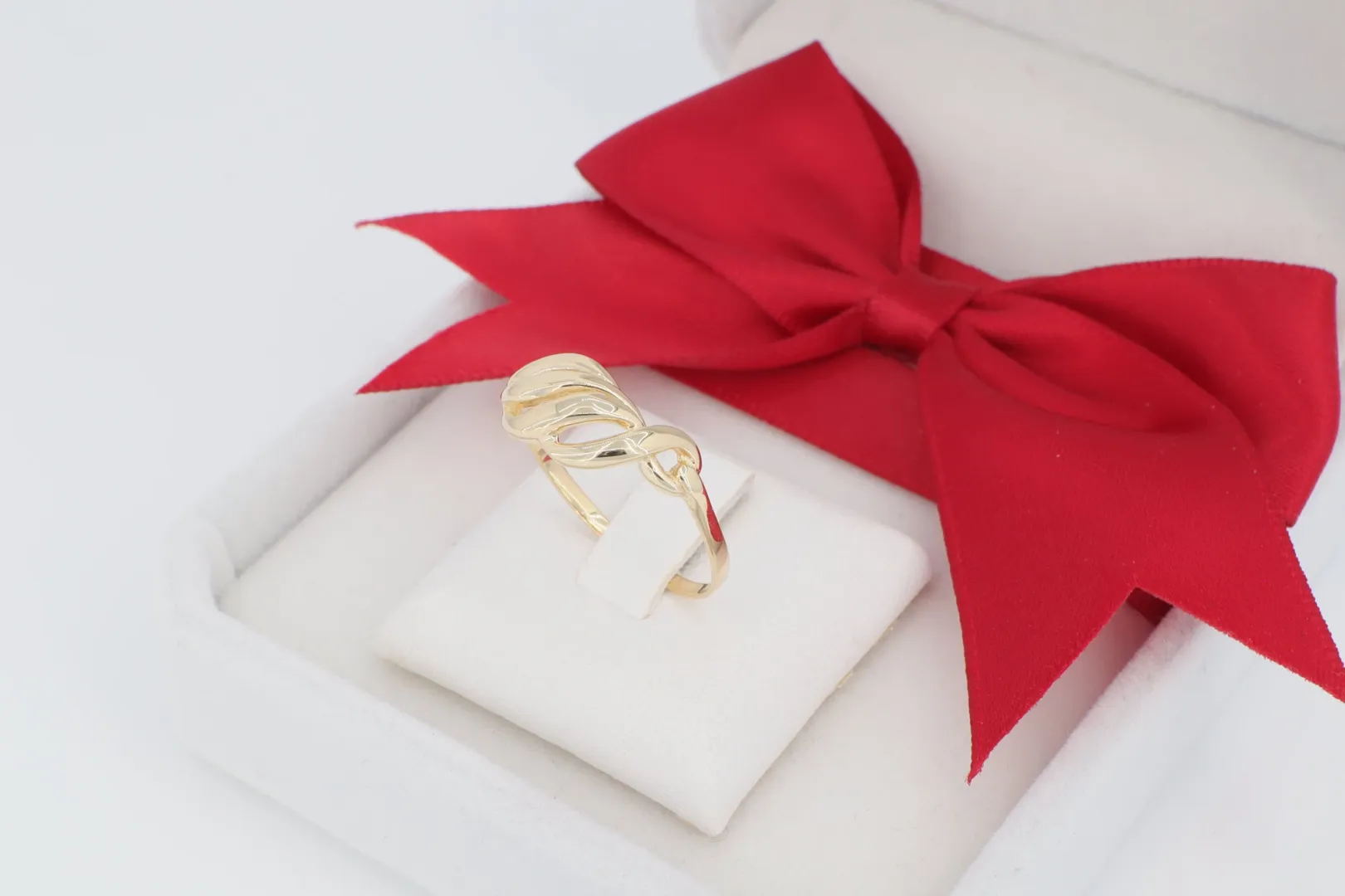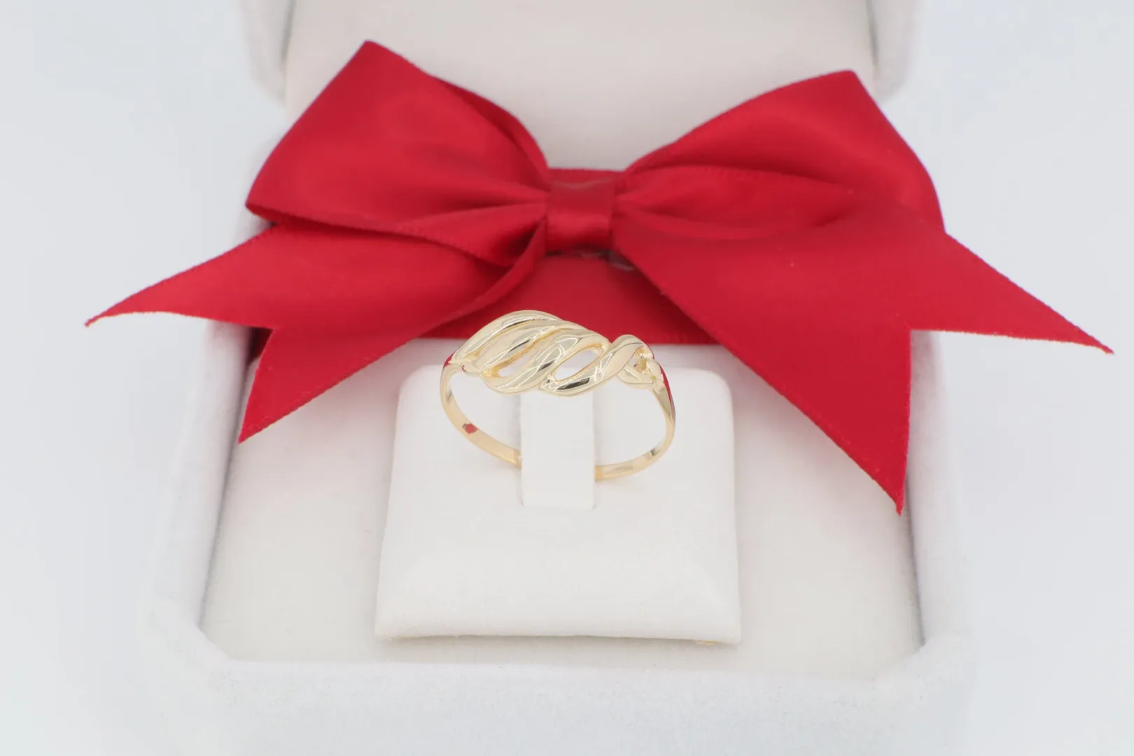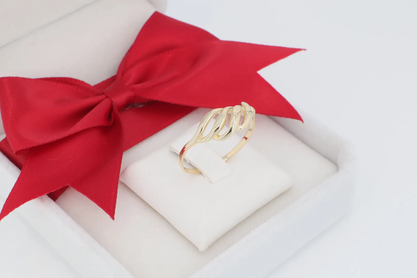 A GY0548 női arany gyűrű a modern, letisztult formatervezés és a természet lágy mozgásának elegáns ötvözete. A gyűrű feje négy áramló sávból áll, amelyek finoman hullámozva, egymásba tekeredve formázzák meg a hullám vagy szél motívumot. A design teljesen tiszta, tükörfényes sárga aranyból készült, hangsúlyozva az arany meleg, klasszikus fényét. Ez a gyűrű ideális azok számára, akik szeretik a formabontó, de egyszerű és kövek nélküli arany ékszereket.