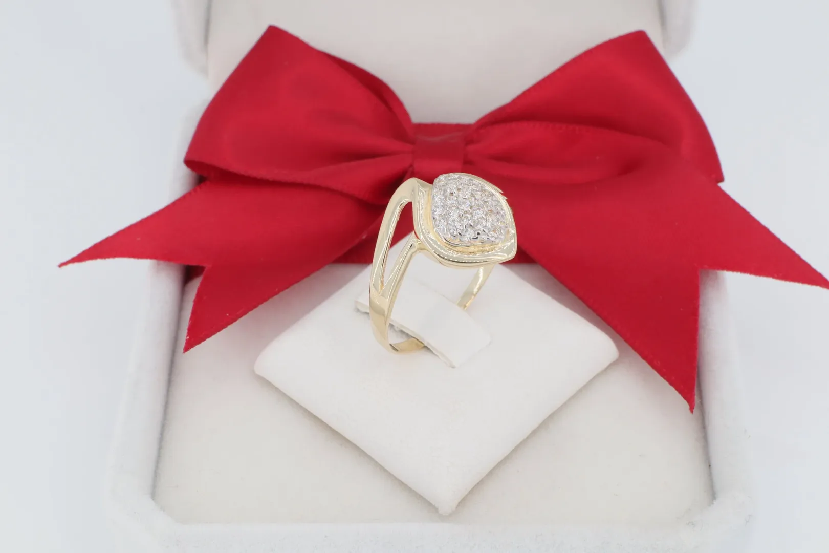 Díszítés: Gazdagon Kövezett Cirkónia Gyűrű – A csepp alakú belső rész teljes egészében apró, briliáns csiszolású cirkónia kövekkel van borítva (pavé foglalat), amelyek intenzív és folyamatos csillogást biztosítanak.