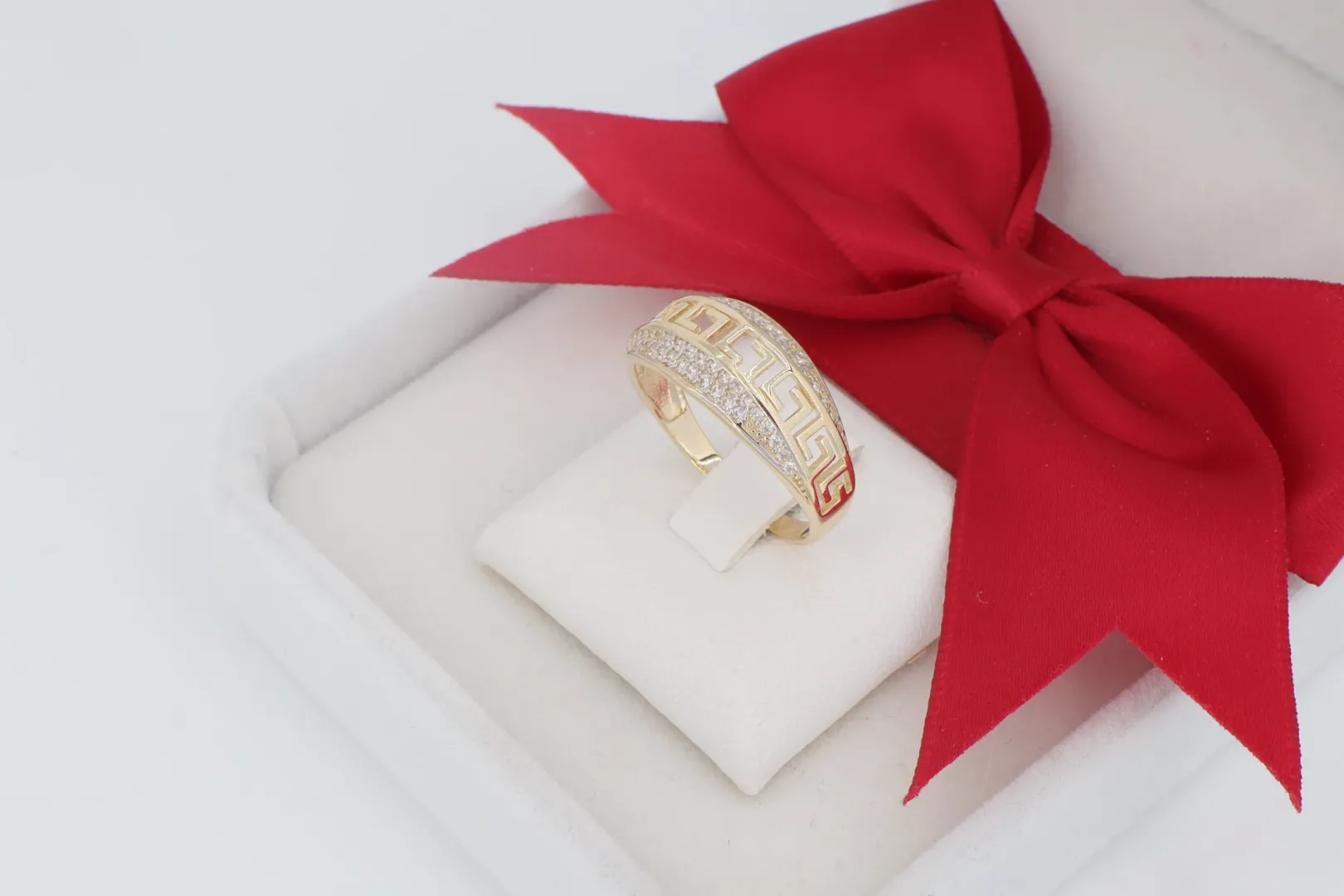 Meander (Görög Kulcs) Motívum: A klasszikus, ősi minta elegáns, intellektuális megjelenést kölcsönöz a gyűrűnek, ideális különleges arany gyűrűt keresőknek.
