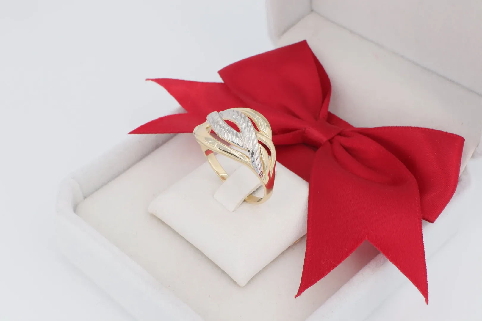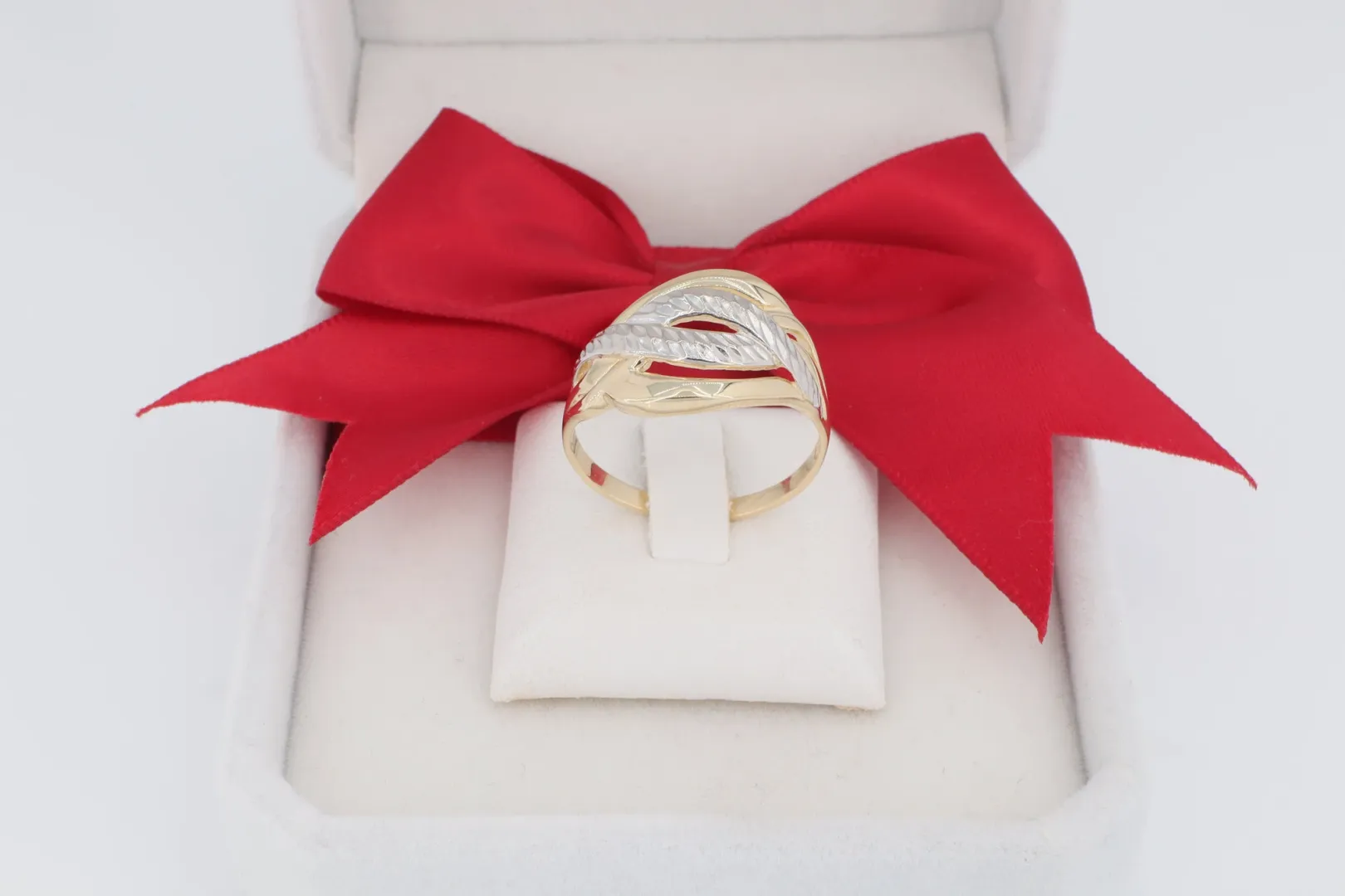 Ajándék nőknek: Lenyűgöző meglepetés azoknak, akik a széles, kéttónusú és kőmentes arany ékszereket kedvelik.