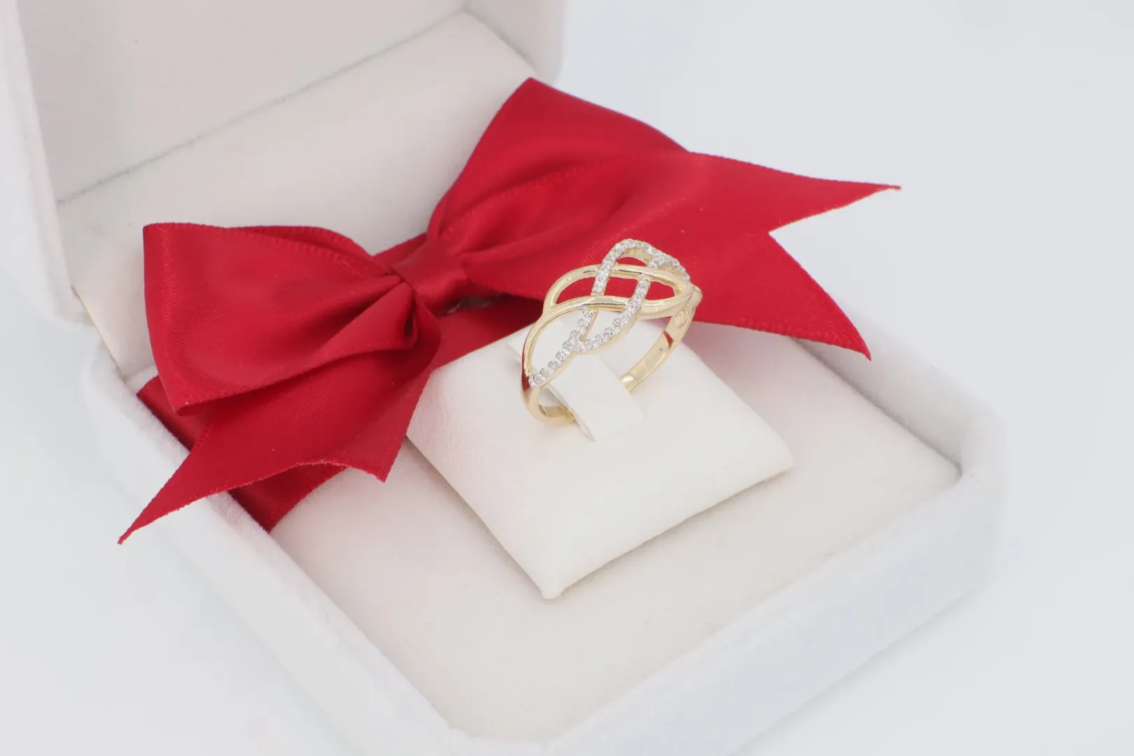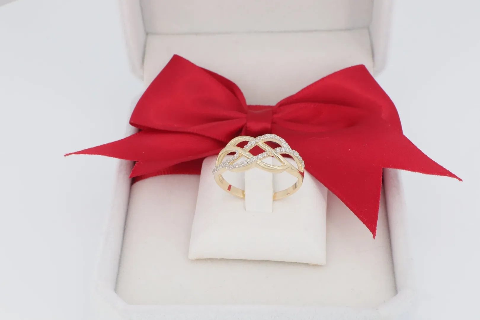 Célközönség: Ajánlott azoknak a hölgyeknek, akik kedvelik a szimbolikus, összefonódó ékszereket, a többsávos, áttört dizájnt, és olyan arany gyűrűt keresnek, ami egyszerre romantikus, látványos és elegáns.