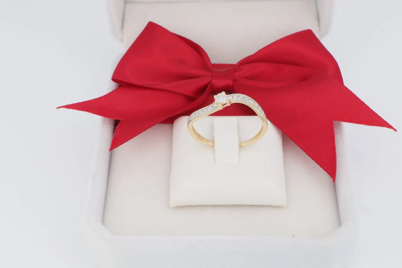A GY1877 -14 karátos arany gyűrű a finom nőiességet és a lendületes eleganciát ötvözi. A gyűrű sínje aszimmetrikusan íves, kecses, hullámvonalat formáz, mely tökéletesen követi a modern ékszertervezés legújabb trendjeit. Ez a forma nemcsak egyedülálló megjelenést biztosít, hanem optikailag nyújtja is az ujjat.
