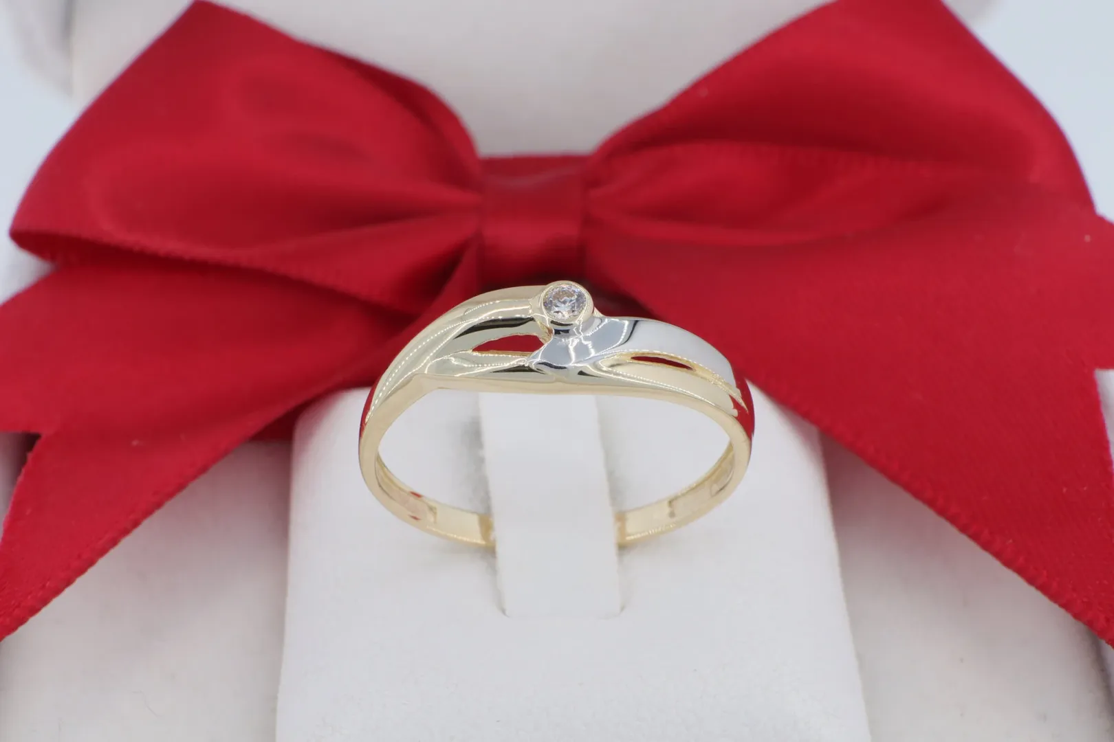 A gy1885-ös, 14 karátos arany gyűrű a modern minimalizmus és a nőies lágyság tökéletes ötvözete. Az ékszer különlegessége a finoman ívelt, hullámvonalat leíró fejrésszel rendelkező kialakítás, amely kecsesen simul az ujjra. A gyűrű fókuszpontjában egyetlen, briliáns csiszolású cirkónia kő helyezkedik el, amelyet a fém ívei fognak közre, biztonságos és elegáns keretet adva a drágakő-imitációnak.
