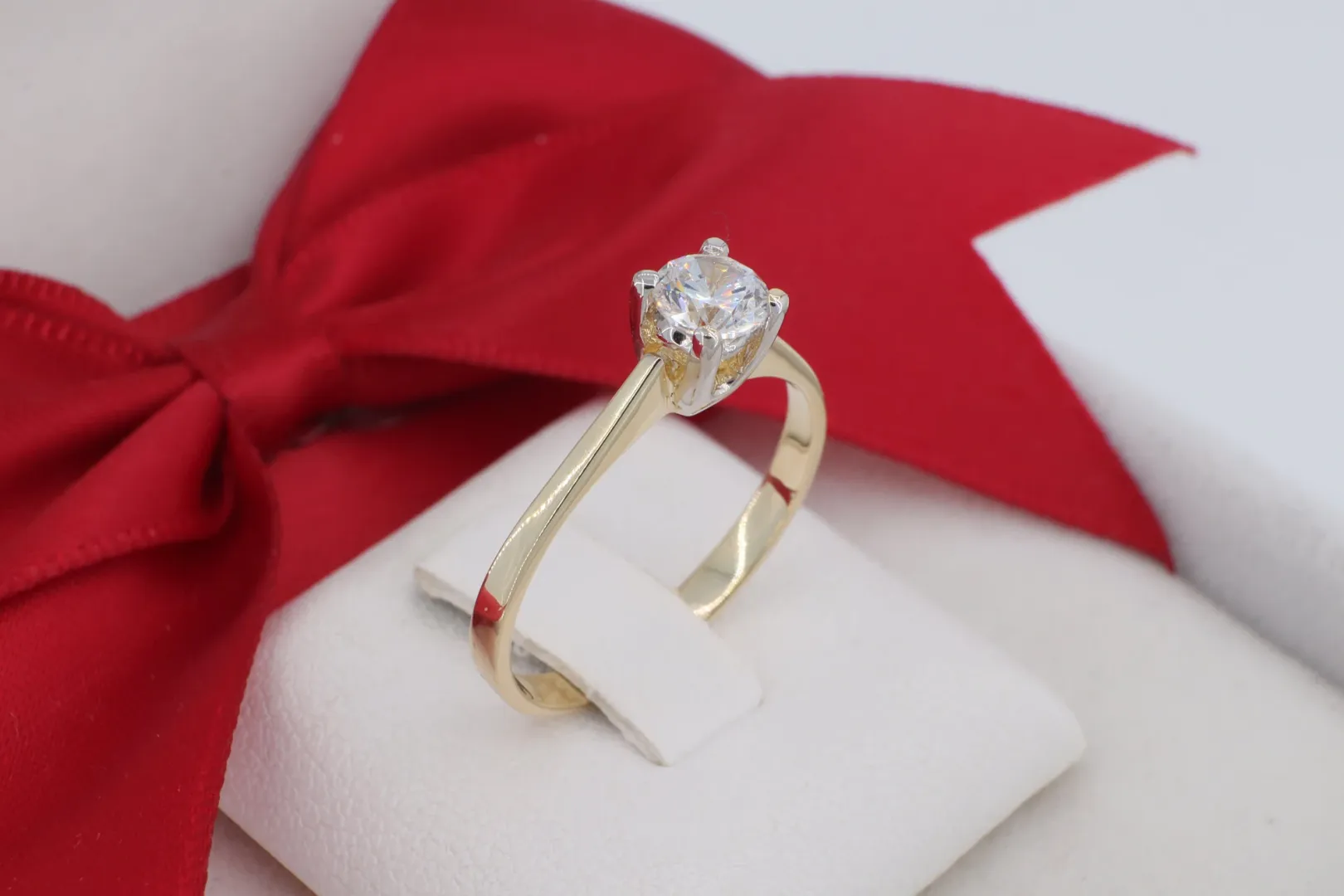 Időtlen 14 Karátos Soliter Gyűrű Briliáns Csiszolású Központi Kővel (gy1342)