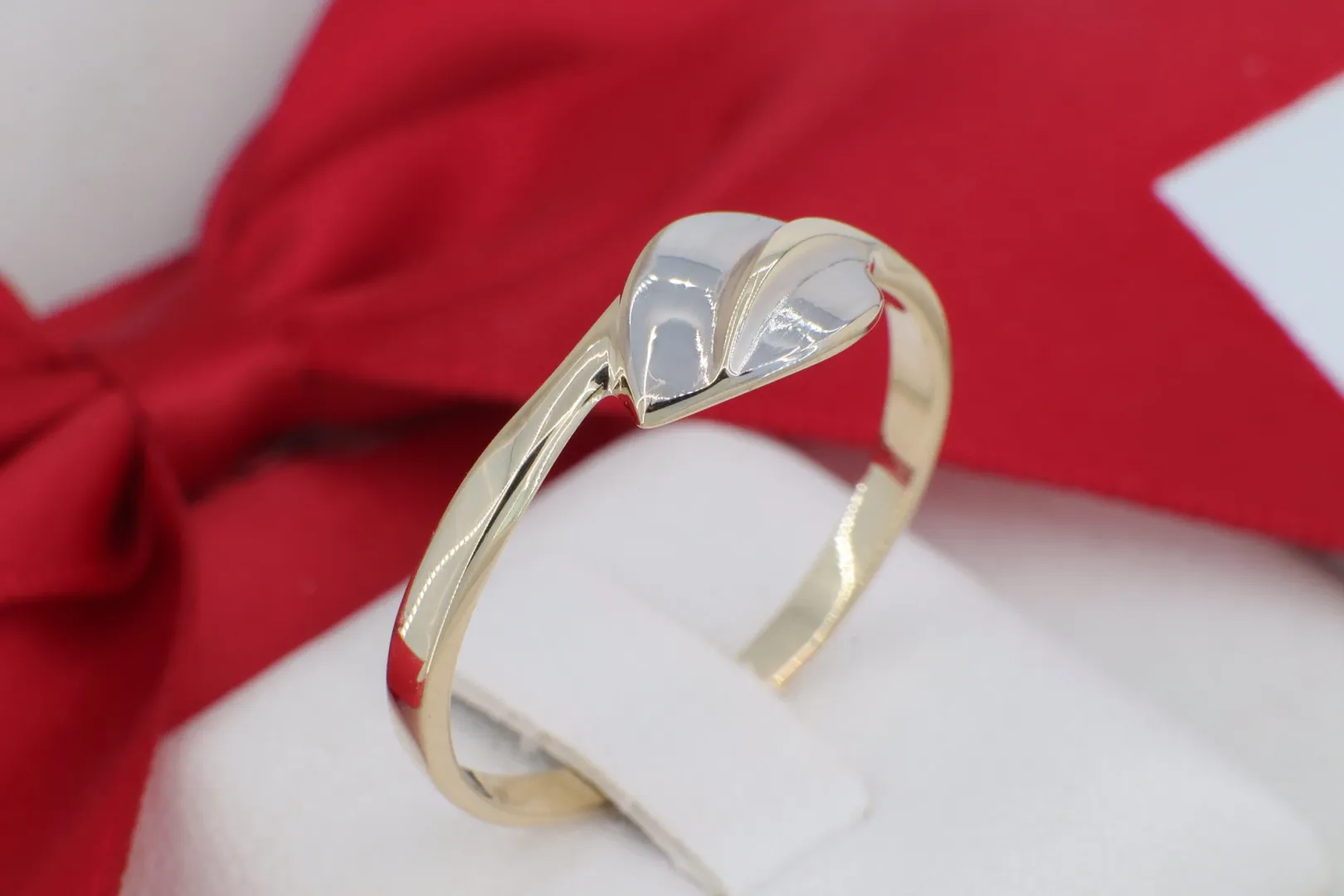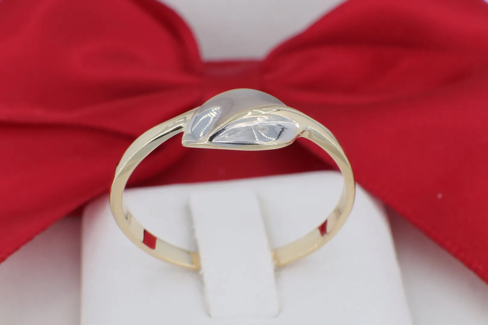 Kecses 14 Karátos Arany Gyűrű – Kéttónusú Levél Motívummal (gy1115)