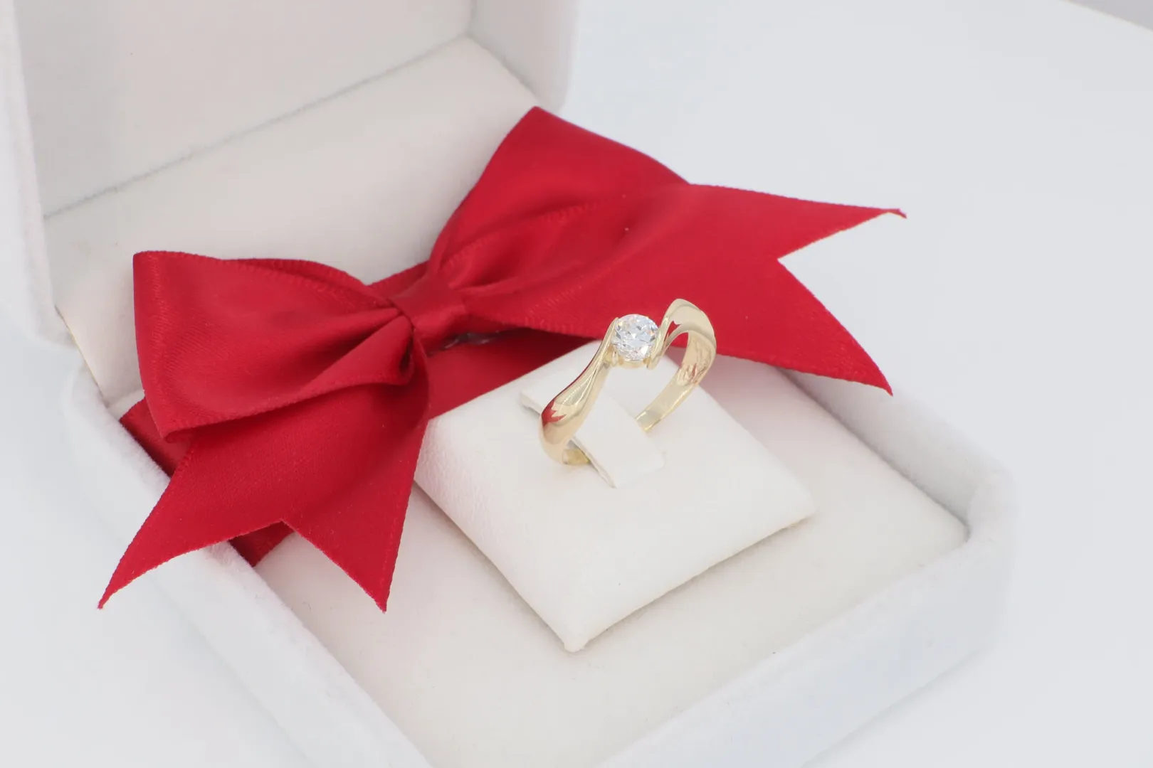 A GY0076 gyűrű a szoliter csillogás, a dinamikus sárga arany és a letisztult vonalvezetés harmonikus ötvözete.