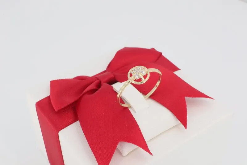 A 2090-es, 14 karátos arany gyűrű a geometrikus formák és a finom csillogás modern kombinációja. Vékony, kecses gyűrűsínje letisztult alapot biztosít a központi, kör alakú motívumnak. Ez a fej nem egyszerűen kövekkel berakott, hanem egy finoman áttört, hálószerű, csillag/virág formát visel egy külső arany kereten belül. A belső motívumot apró, ragyogó cirkónia kövek díszítik, amelyek finom, koncentrált csillogást biztosítanak. Ez a design az egyszerűséget ötvözi a részletgazdagsággal.