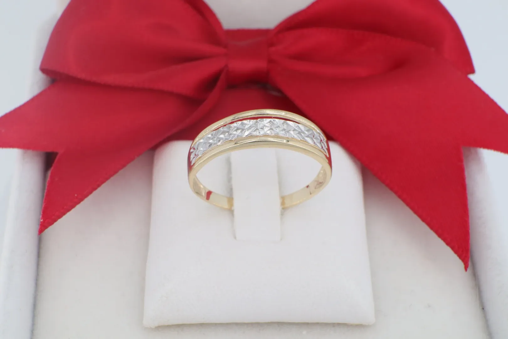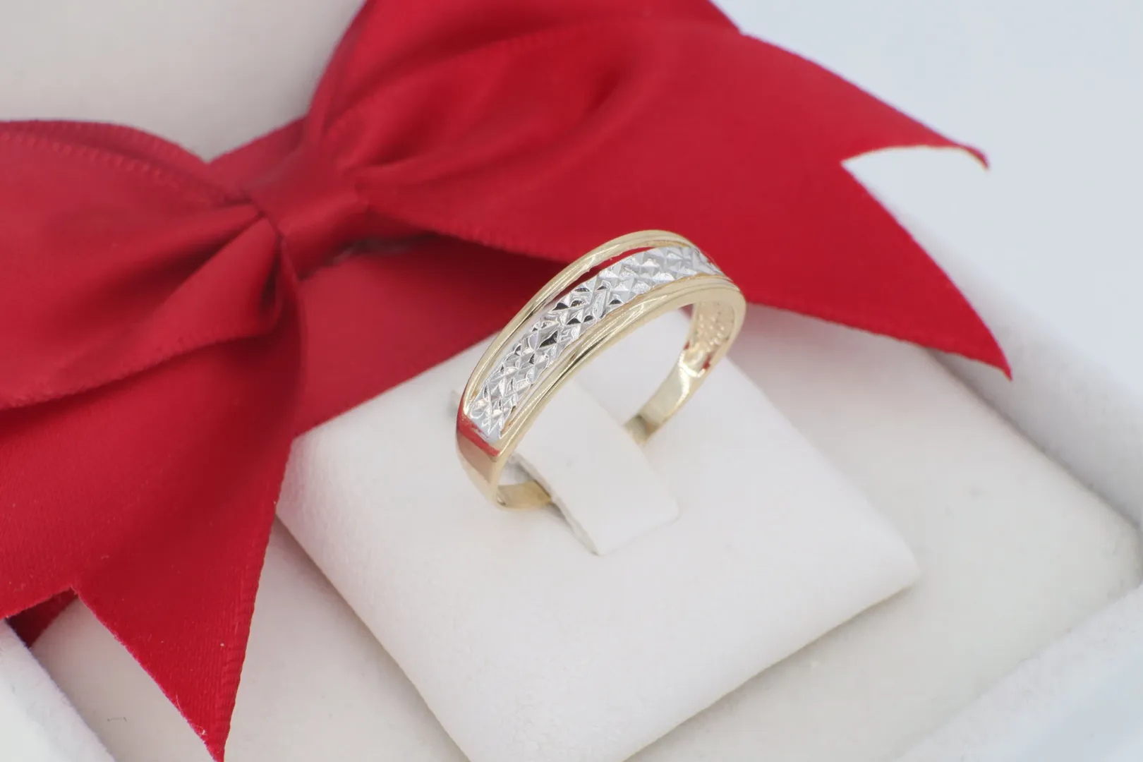 Kétszínű 14 Karátos Arany Gyűrű Gyémántvésett Mintázattal (gy1187)